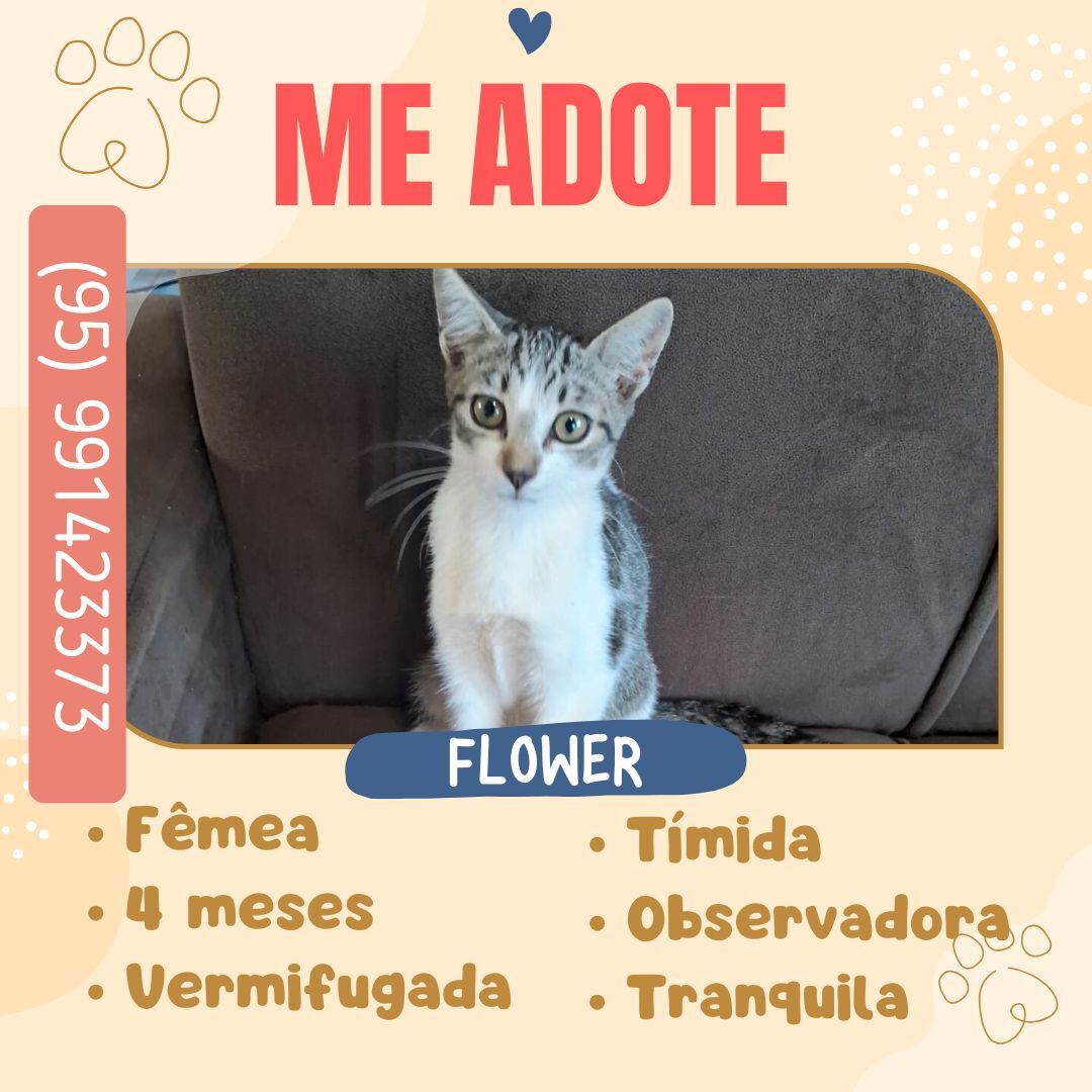 É uma gatinha tímida e desconfiada, mas dócil. Apesar de não gostar muito de contato, adora observar seus irmãos felinos e os humanos ao longo de dia.