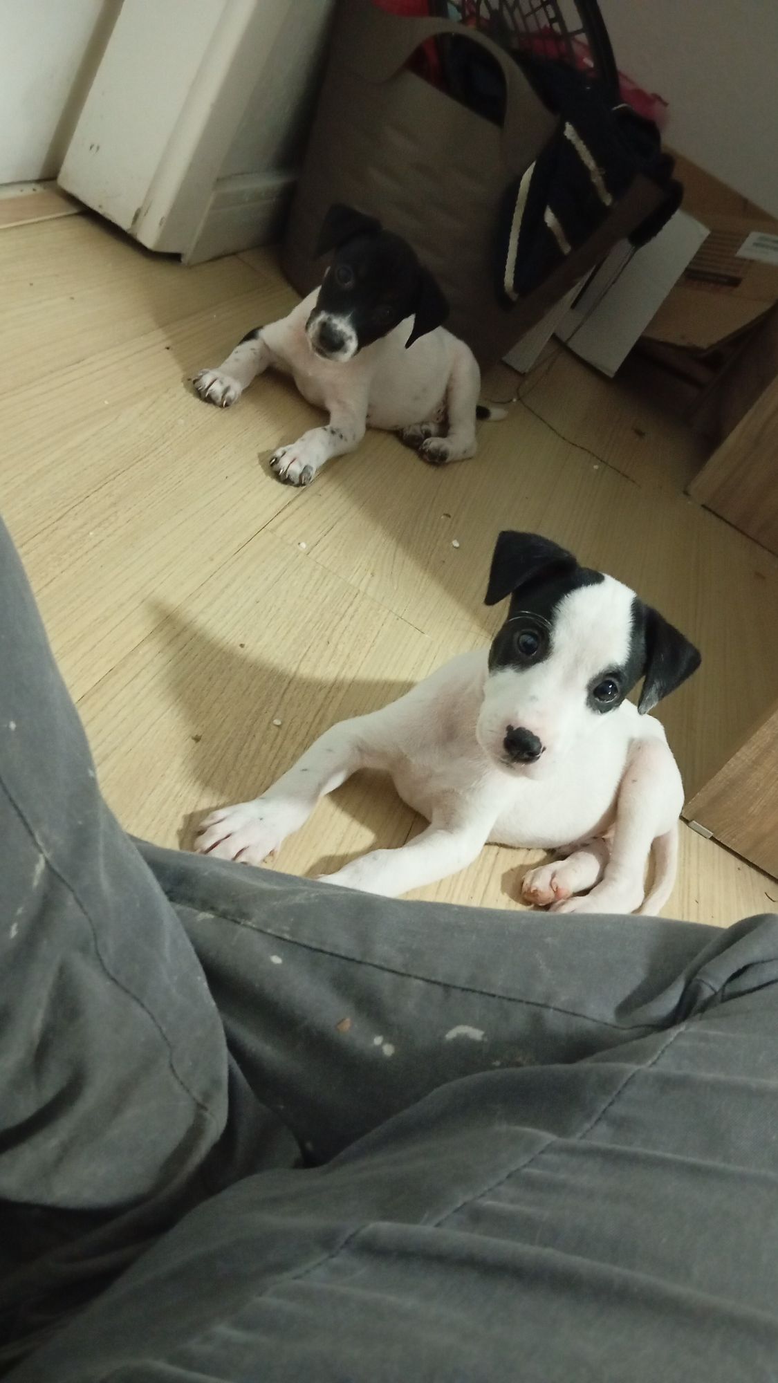 Stark e Miranha  Macho   Raça: SRD-ViraLata  Porte: Medio   Idade: 2 a 6 meses Pelagem: Branca/Preta    Dois filhotes de cerca de 3m, extremamente brincalhões e carinhosos, se dão bem com gatos.