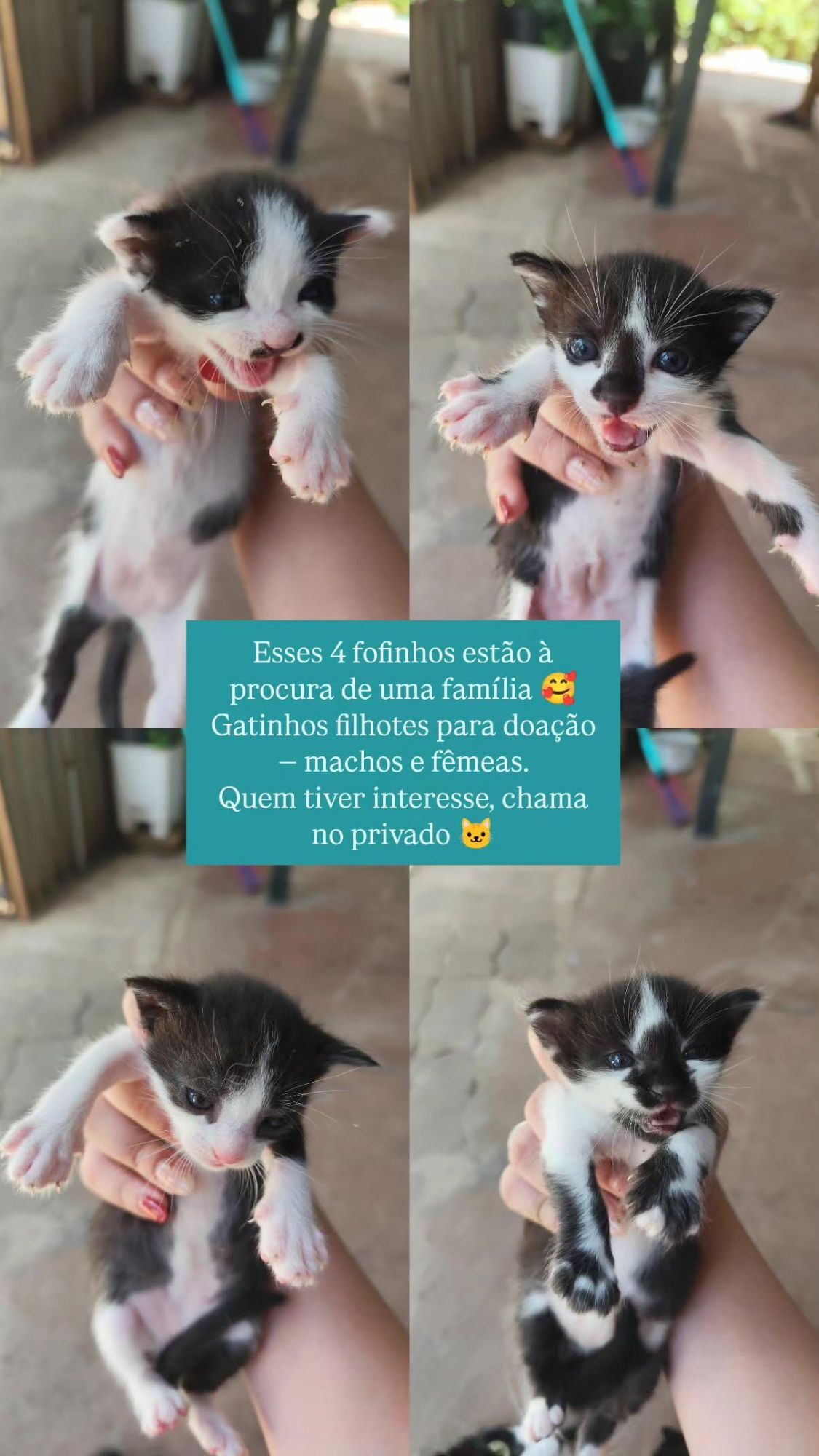 Estou doando 4 filhotes,dois machos e duas fêmeas.