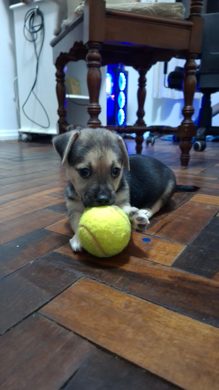 Ele foi abandonado junto com 3 irmãs em uma praça, acolhemos temporariamente, para não deixá-lo na rua, mas não temos como ficar com ele. Ele é dócil, amável, lindo e muito fofo. Precisa de um lar urgente.