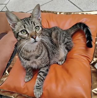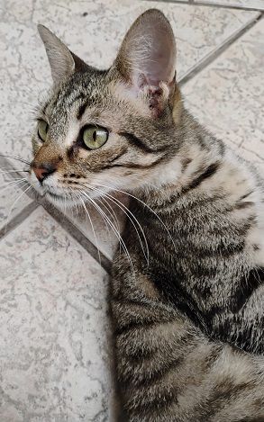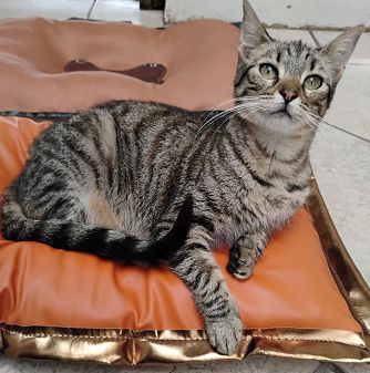 Linda tigrada de belos olhos verdes, dócil e brincalhona para adoção responsável