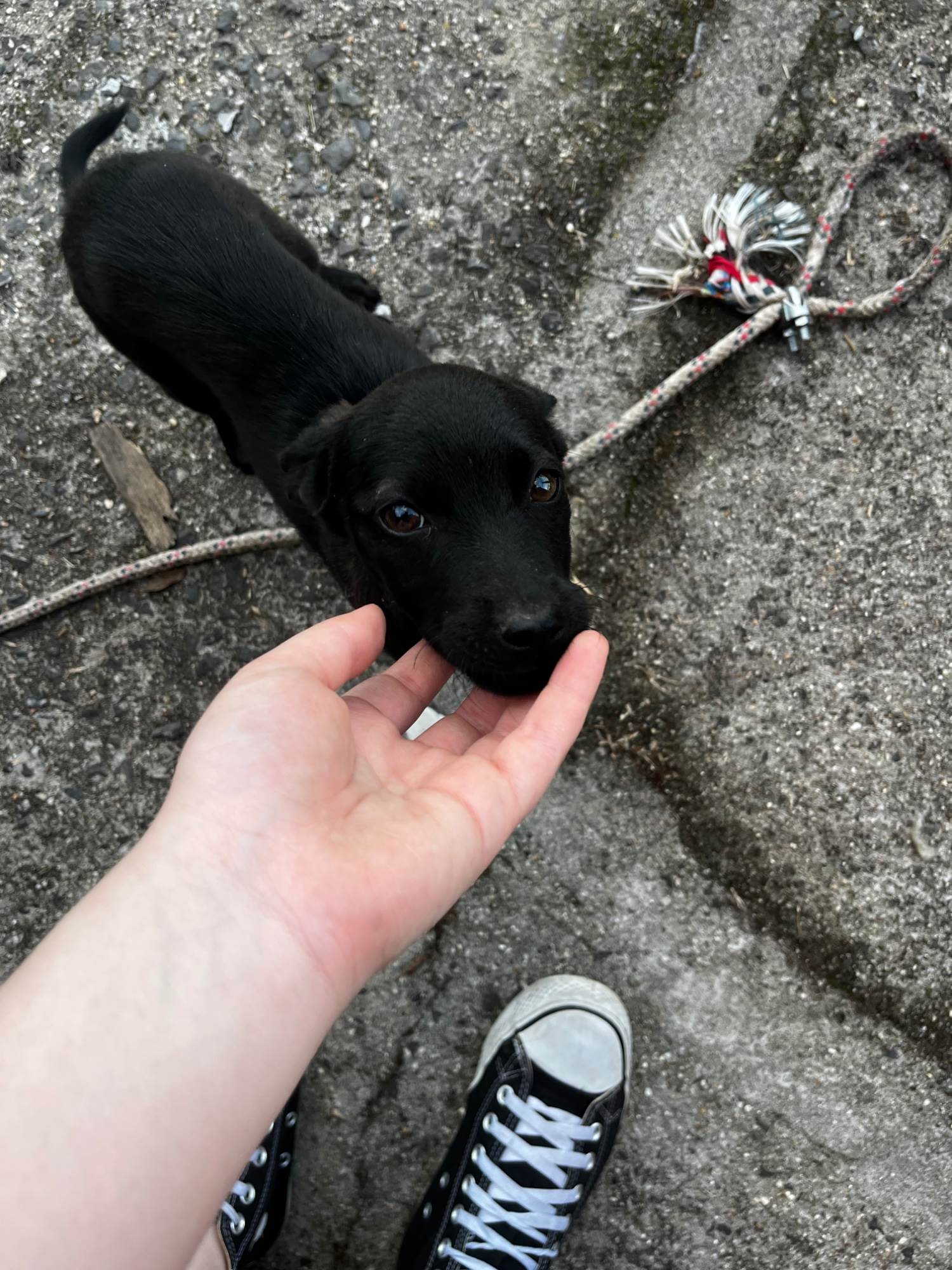 entramos ela na rua, ainda é tímida, mas com carinho se solta bastante