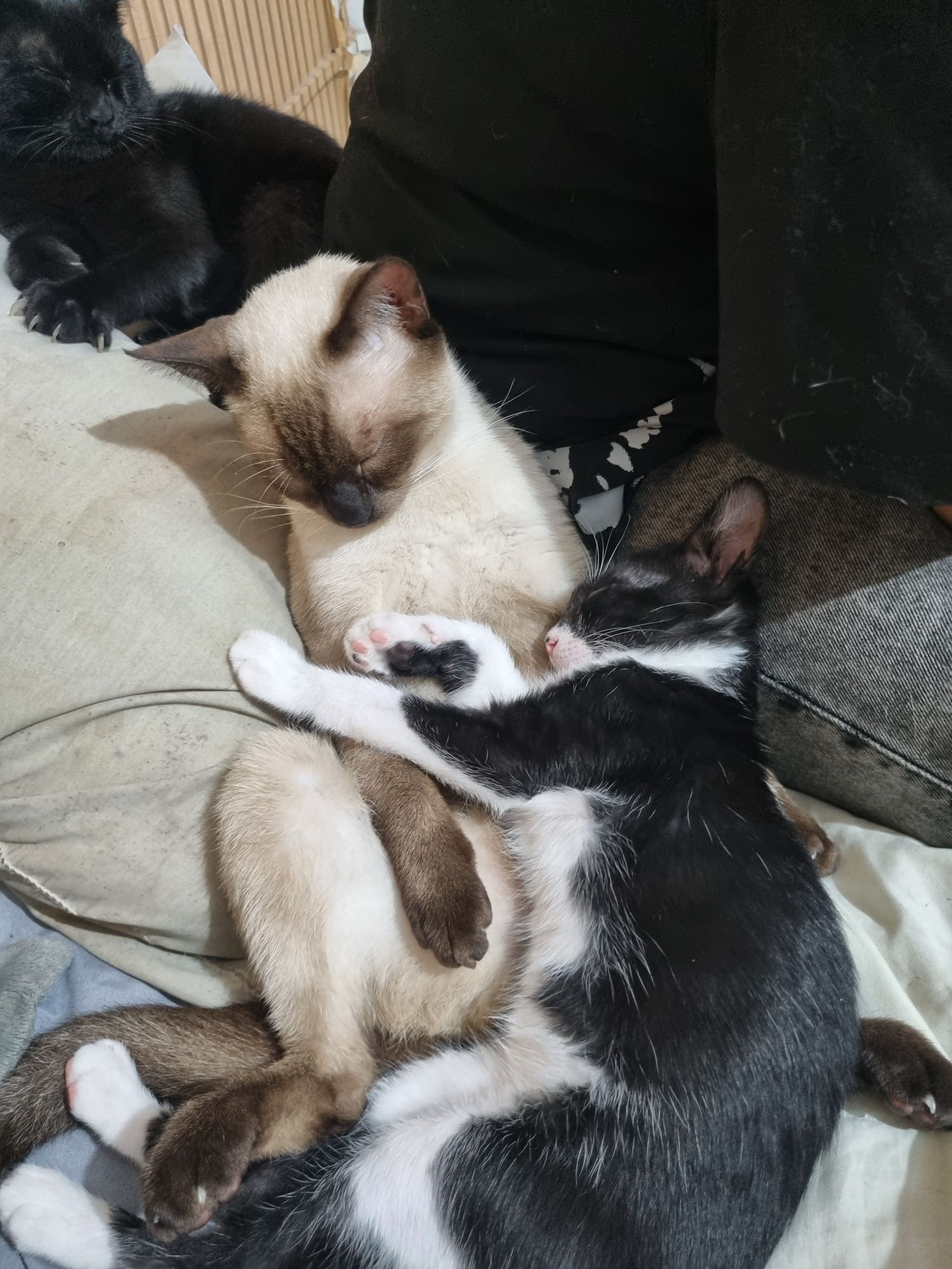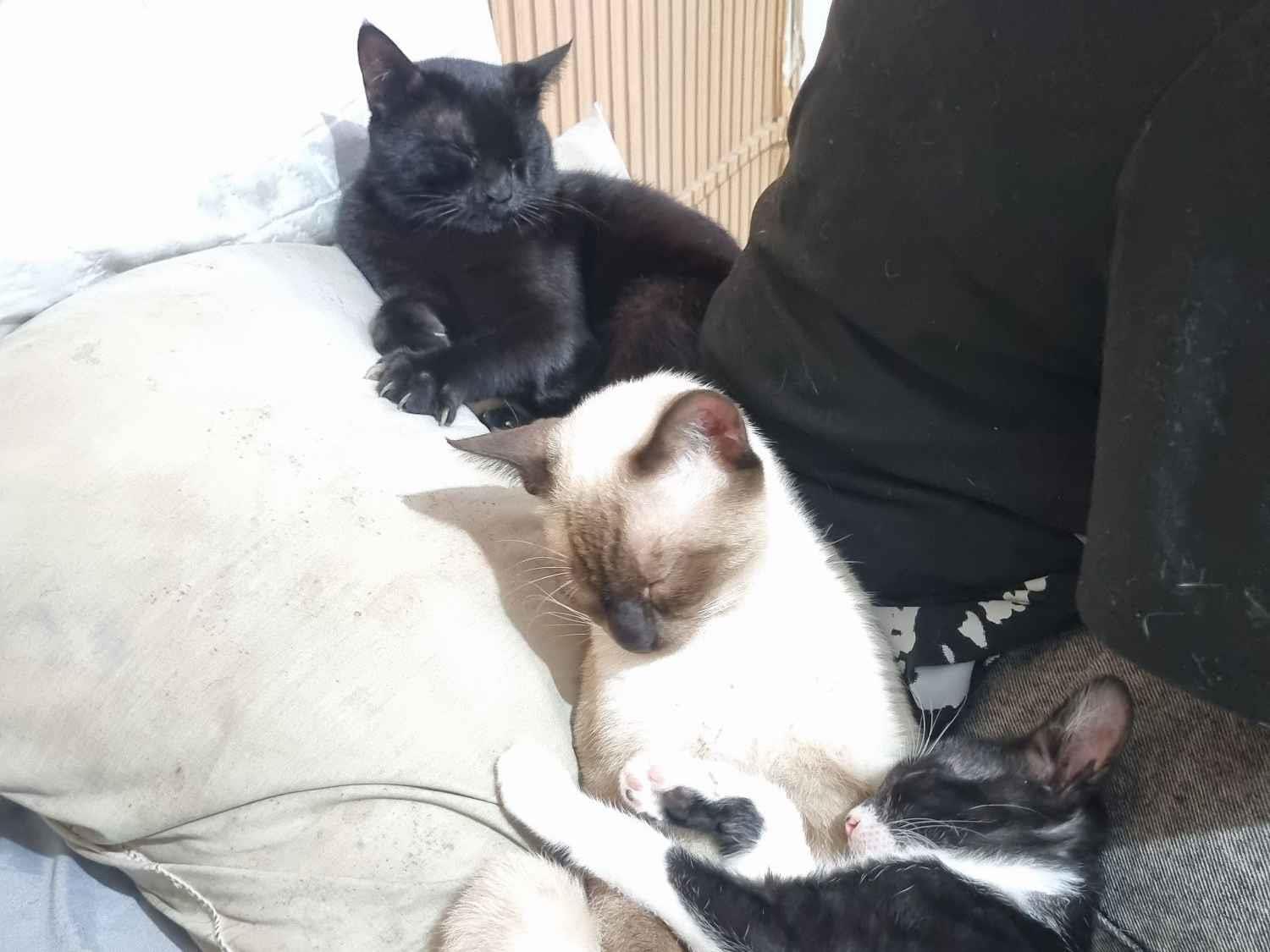 Eu peguei esses 3 gatinhos na rua, a mais ou menos 1 mês atrás, os maiores (siamês e preto) tem menos de 1 ano (segundo a veterinária) e o menor (frajola) tem entre 2 e 3 meses. Eles são super dóceis, amam brincar, infelizmente preciso doar pois não tenho como ficar, tenho 1 cachorro grande e tenho medo de não se darem bem, se quiser mais fotos deles ou quiser saber mais, me chama
