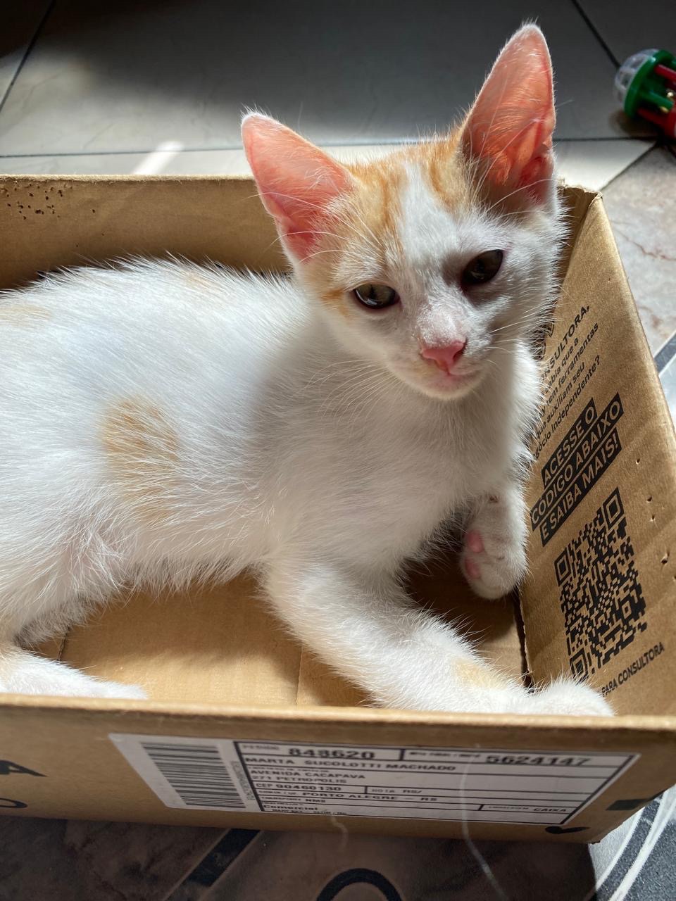 Com sua pelagem branca salpicada de caramelo, ele encanta a todos com sua doçura e calma. 🌟 Se você está procurando um amigo amoroso para alegrar seus dias, ele é a escolha perfeita!