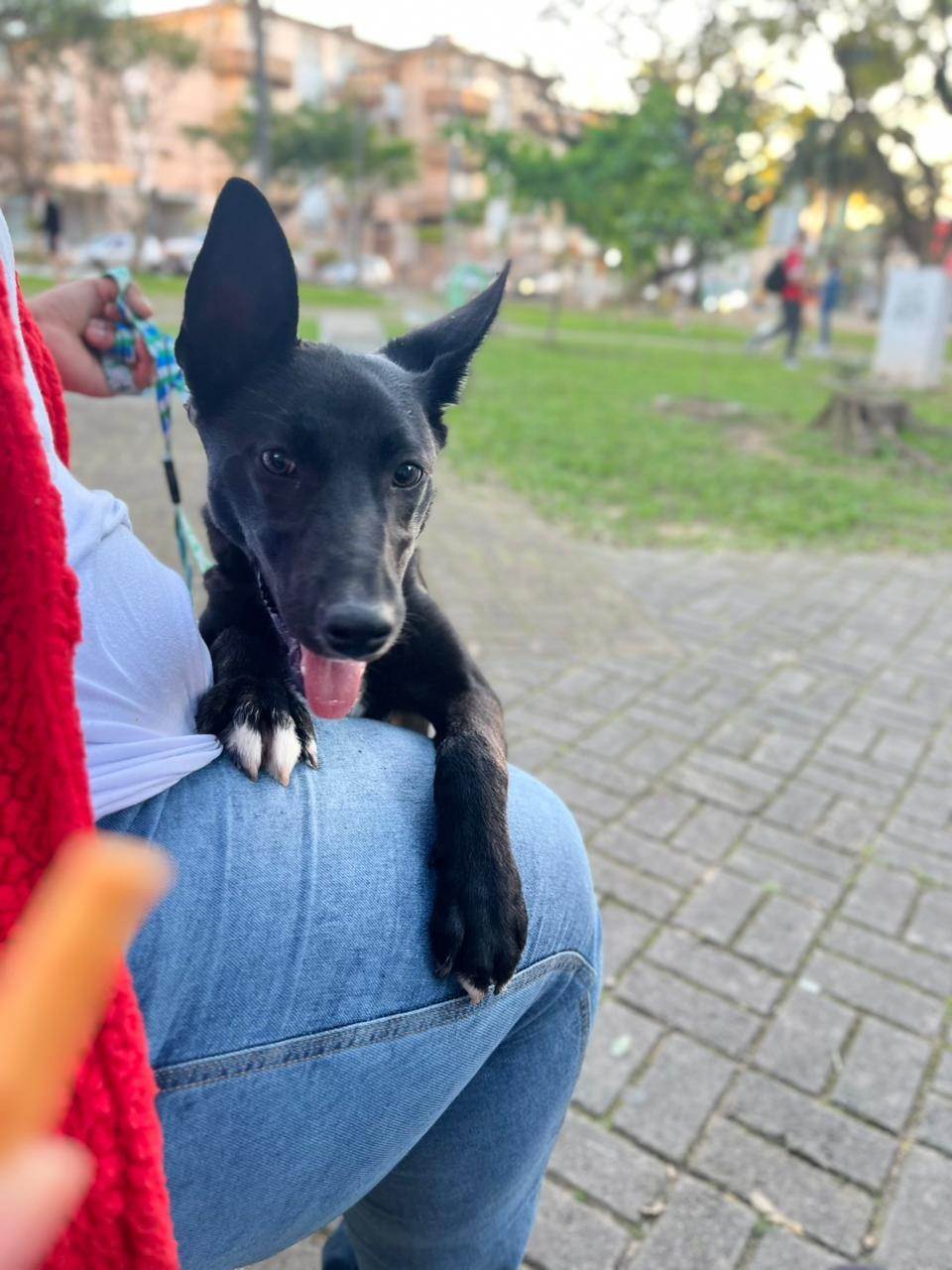 Maya é uma cadela encantadora da raça SRD-Vira Lata, com uma pelagem preta elegante. Estima-se que ela tenha entre 7 a 11 meses, sendo ainda uma jovem cheia de energia e vitalidade. De porte médio, Maya é perfeita para famílias que procuram companhia tanto dentro quanto fora de casa. Extremamente sociável, ela se dá bem com todos que encontra, incluindo gatos, outros cachorros, crianças, idosos e até mesmo desconhecidos.