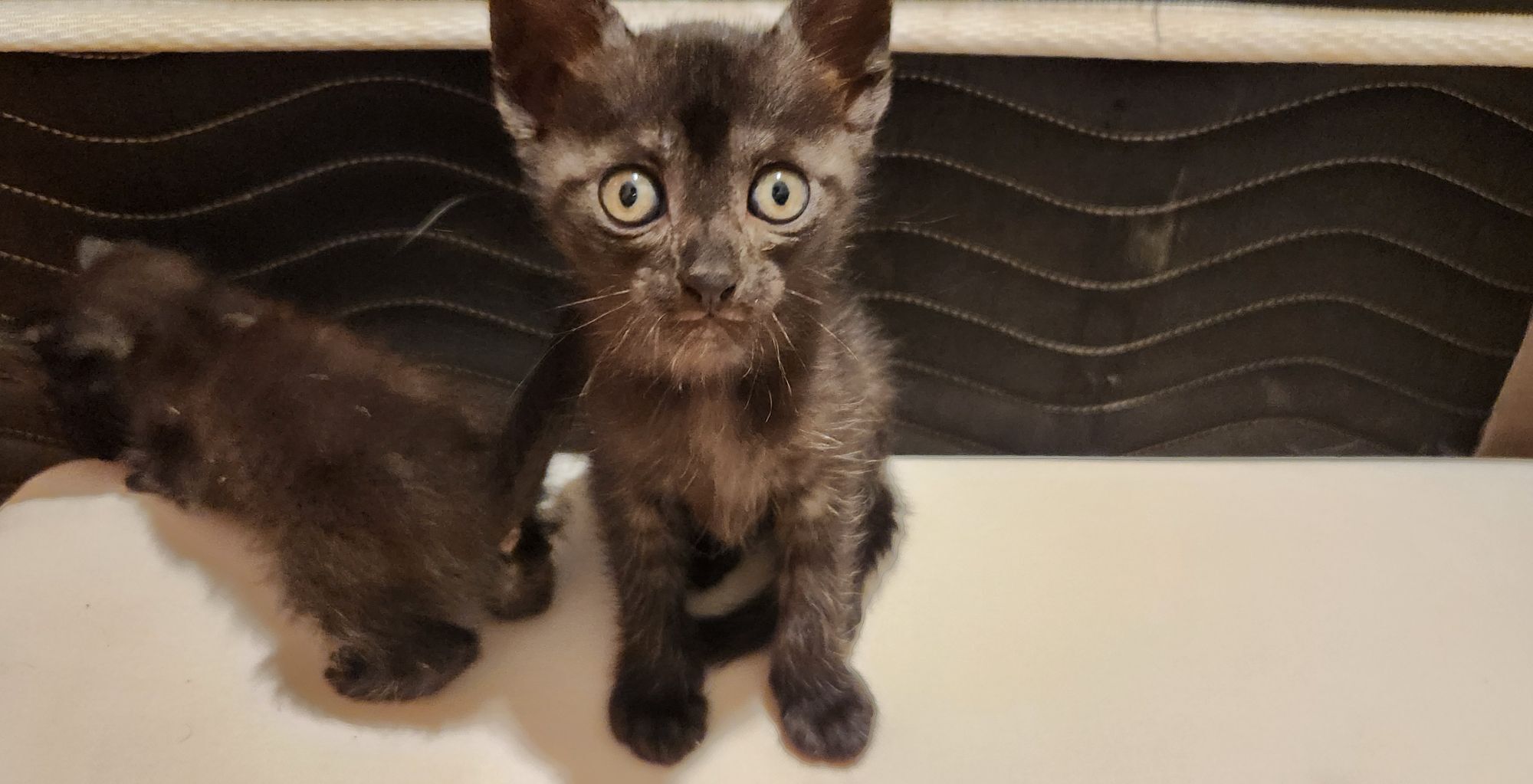 Estou doando estes gatinhos. Os de pelagem preta são machos, e o preto com branco é fêmea. Nascidos no dia 19 de novembro de 2025.