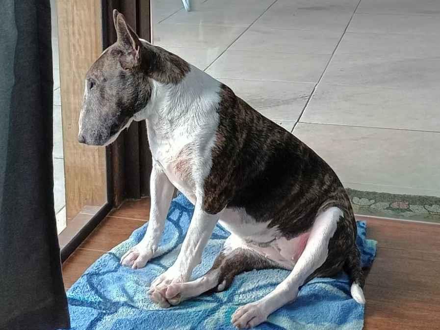 Cachorra da raça Bull terrier, está atualmente em um apartamento, porém não podemos ficar mais com ela.