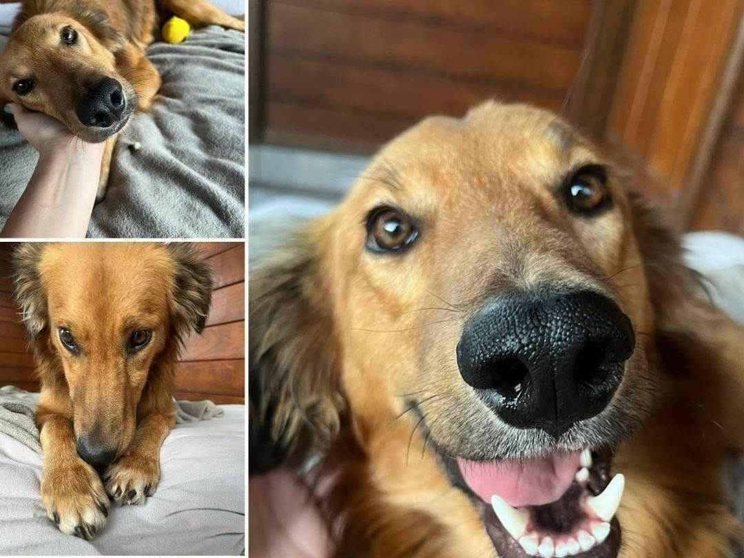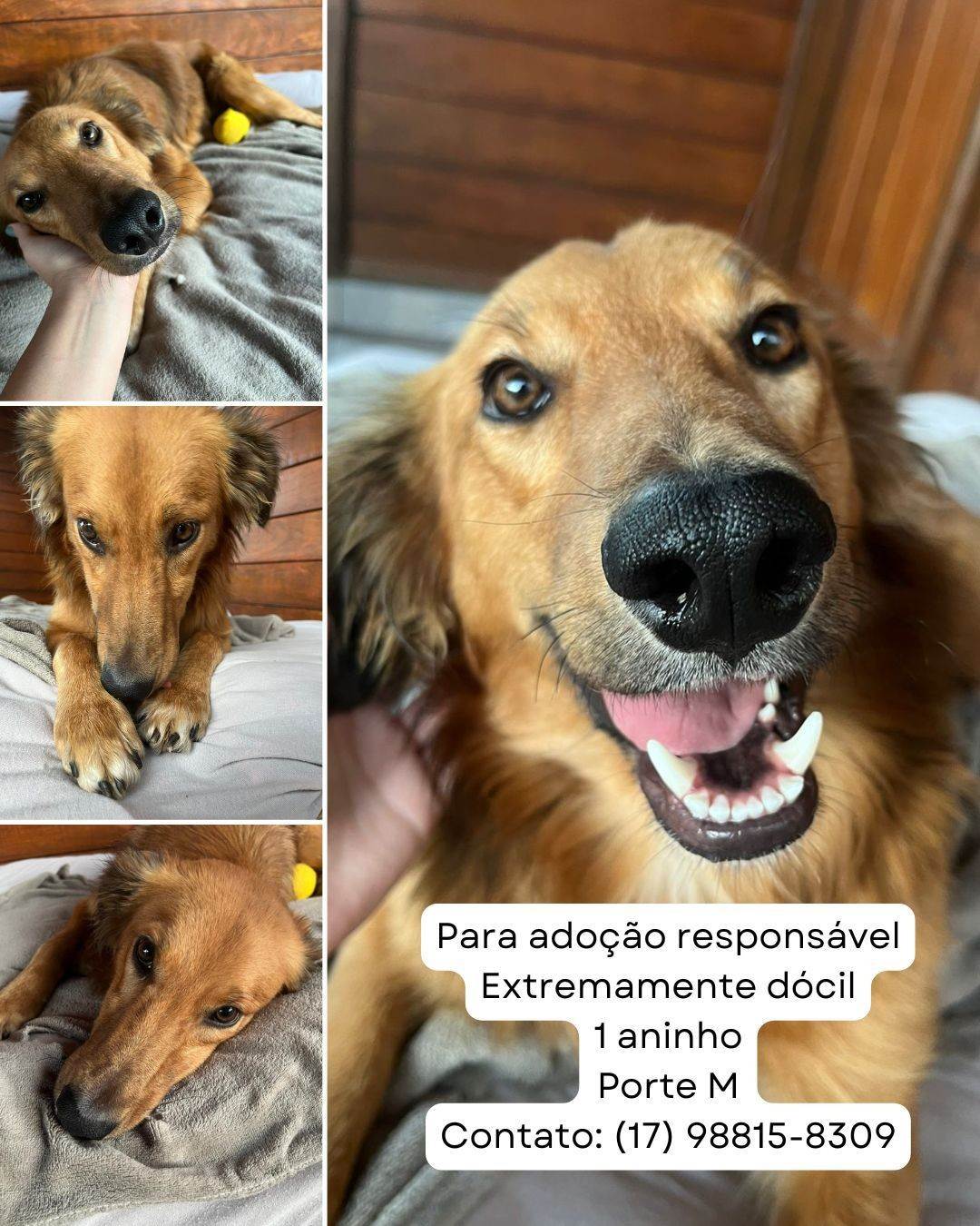 Ele tem porte M (mas um M pequeno - 18kgs), parece uma mistura de golden com border collie – e está pronto para encontrar a família que vai enchê-lo de amor e nunca mais deixá-lo sofrer. ????