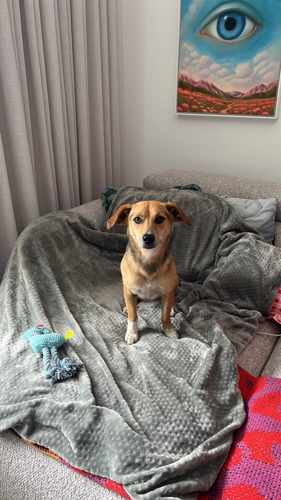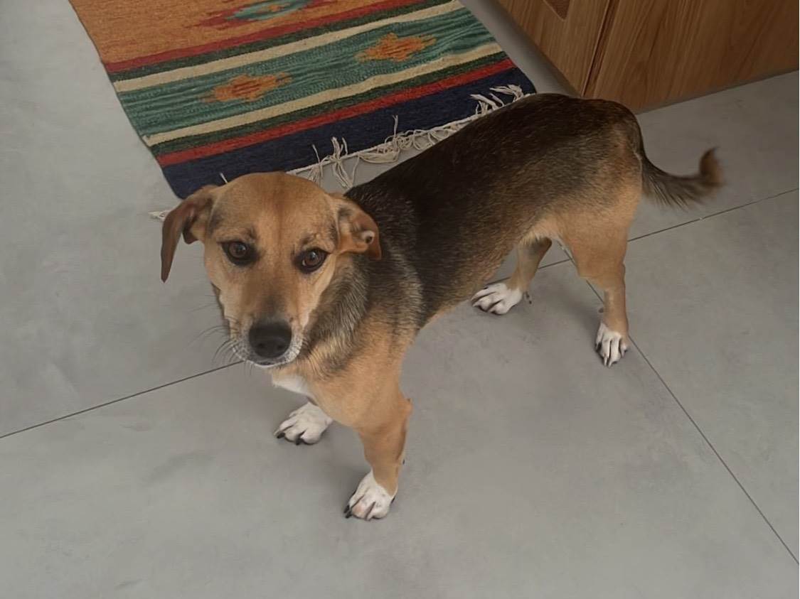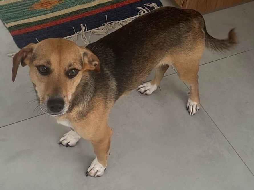 Cadelinha de porte médio, muito dócil e carinhosa, porém muito medrosa! Já foi abandonada e está no lar temporário, de preferência uma casa com pátio!