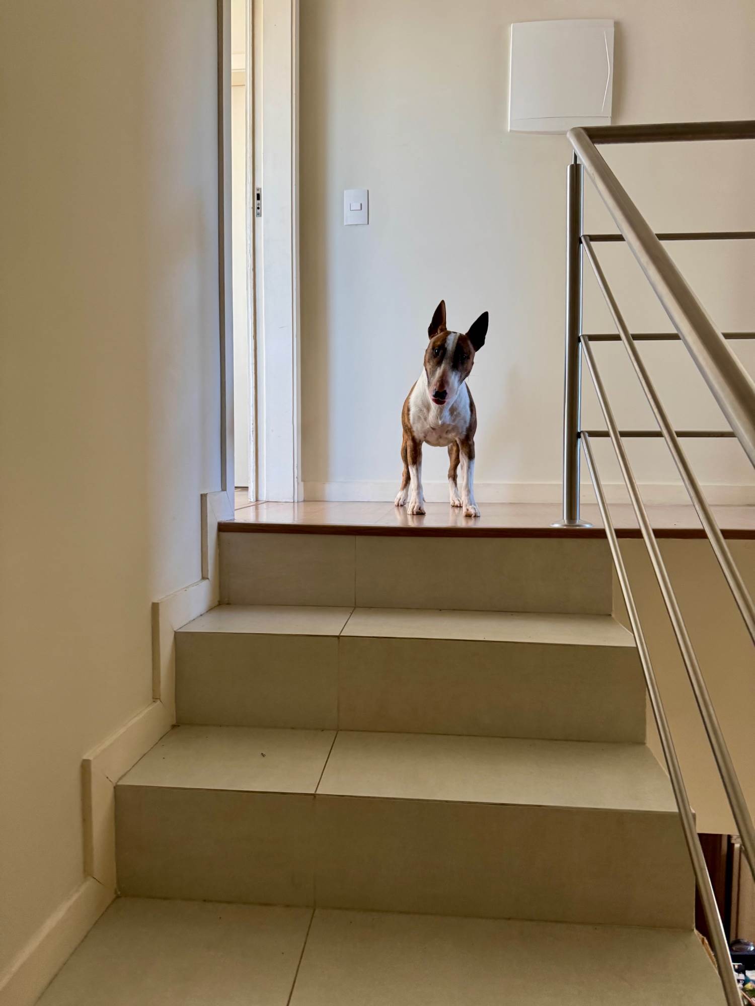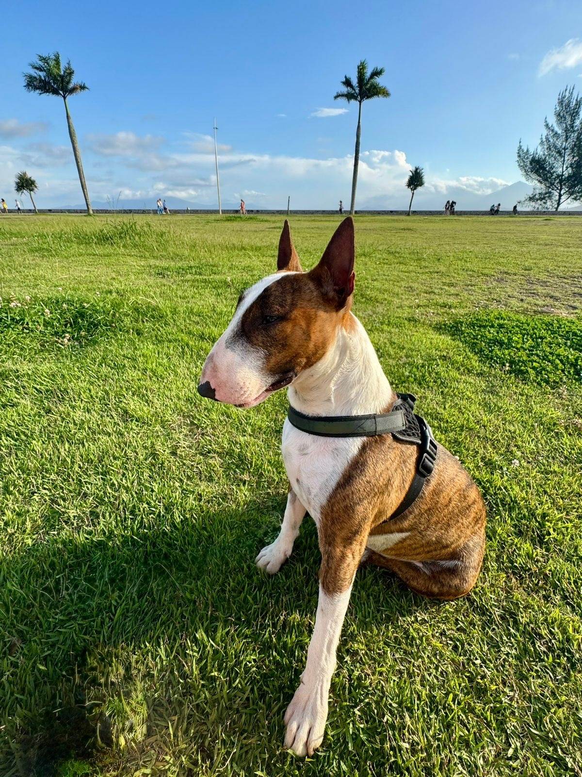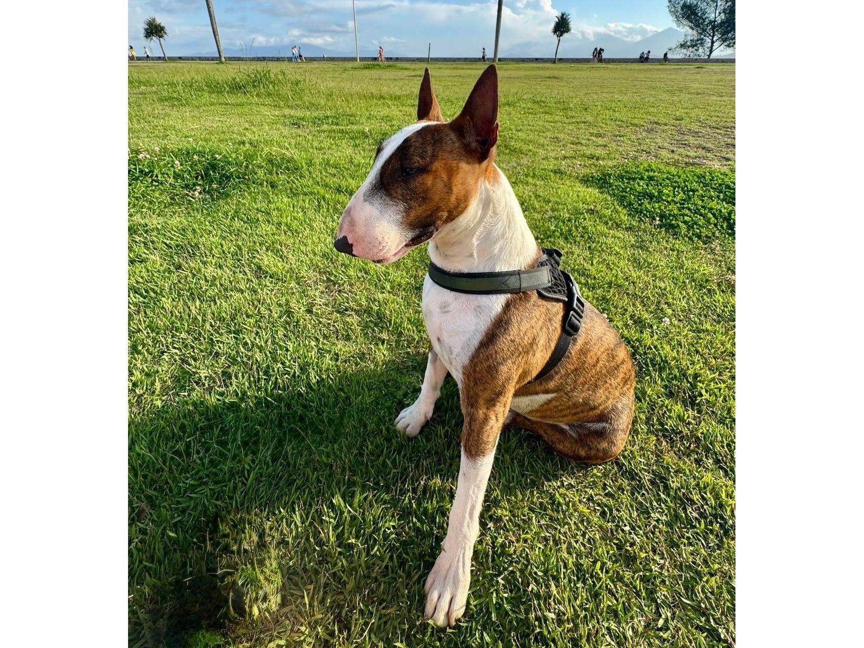 Estou procurando uma nova família para o Testo, meu Mini Bull Terrier de 2 anos e 4 meses.