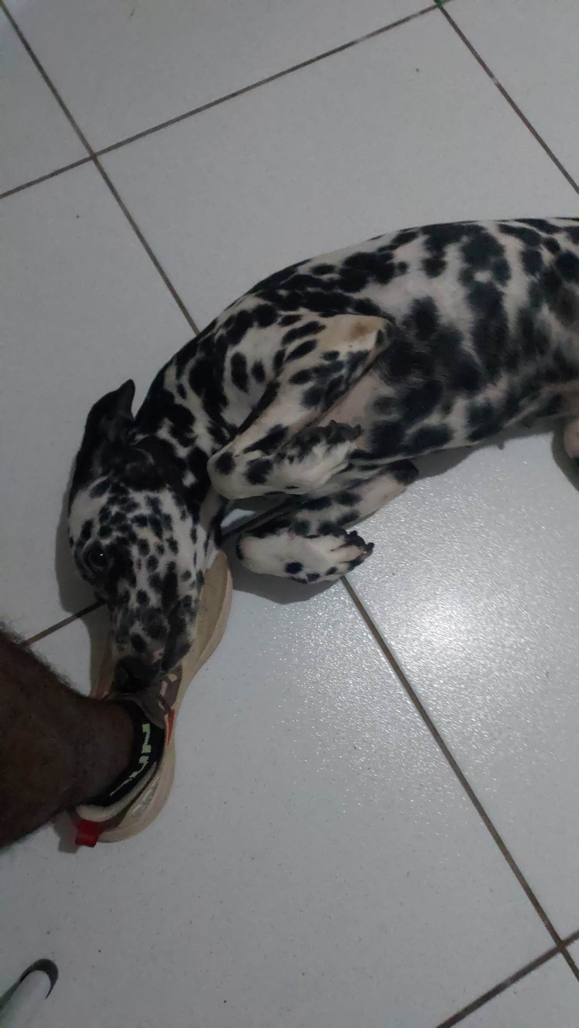 E uma cahorra que não é acostumada com muita gente, só que tuve experiência de ela se adaptar com outras pessoas bem rápido