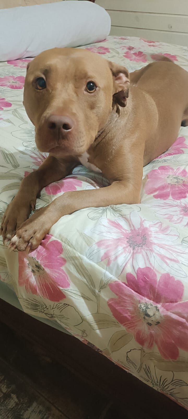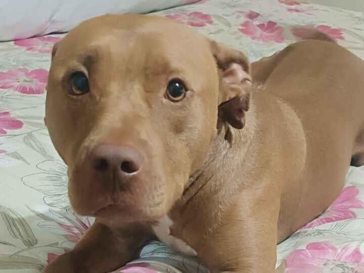 A Melinda vive em um quintal com outros animais, porém irá perder seu lar juntamente com seu dono, e por isso terá que ser doada urgentemente. Pois seu dono irá morar de favor na casa de seu familiar e lá não será aceitado outros animais.