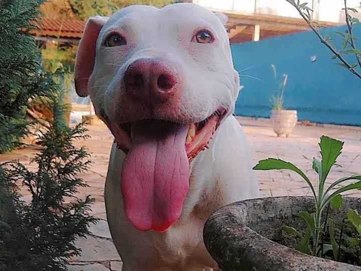 Conheça a Deusa, uma encantadora fêmea de 6 anos da raça Pit-Bull, com uma bela pelagem branca. Com um porte grande, ela é uma companheira perfeita para quem busca um cão leal e amoroso. Deusa é castrada e vacinada, garantindo sua saúde e bem-estar. Seu temperamento dócil e calmo faz dela uma ótima companhia para toda a família. Além de ser brincalhona e sociável, ela convive bem com crianças, idosos e até desconhecidos, mostrando-se extremamente amigável e receptiva.