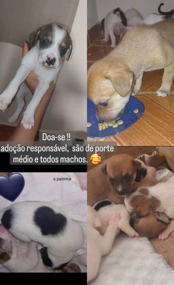 Adoção responsável. São 4 machos e 1 fêmea , São de porte médio, a mãe é bem pequena e tranquila