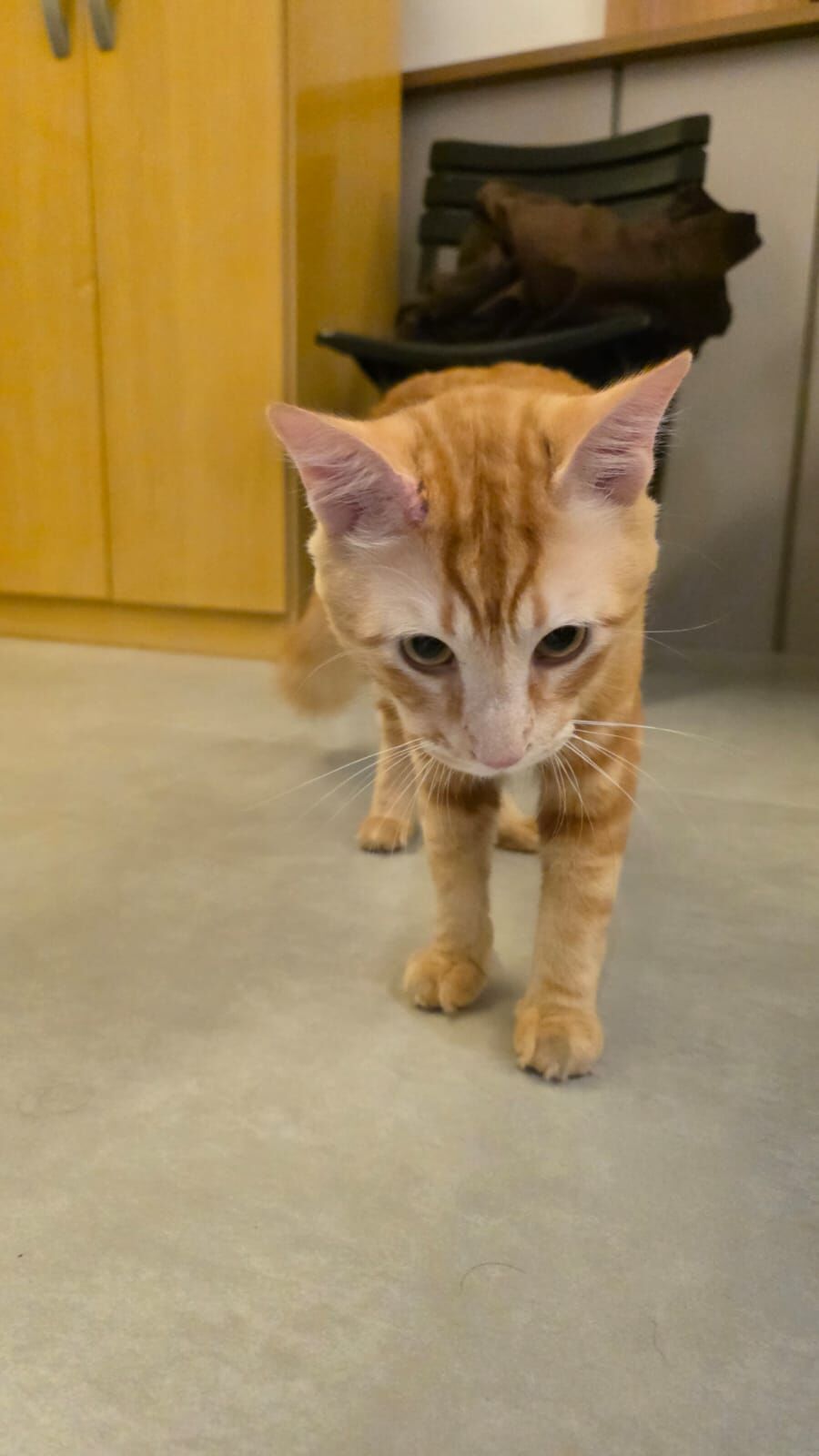 Esse adorável gatinho resgatado da rua no Parque da Fazenda em Campinas, perto da PUC, está à procura de um lar. Ele tem cerca de 7 a 11 meses, é um macho SRD (vira-lata) com linda pelagem caramelo e porte médio.