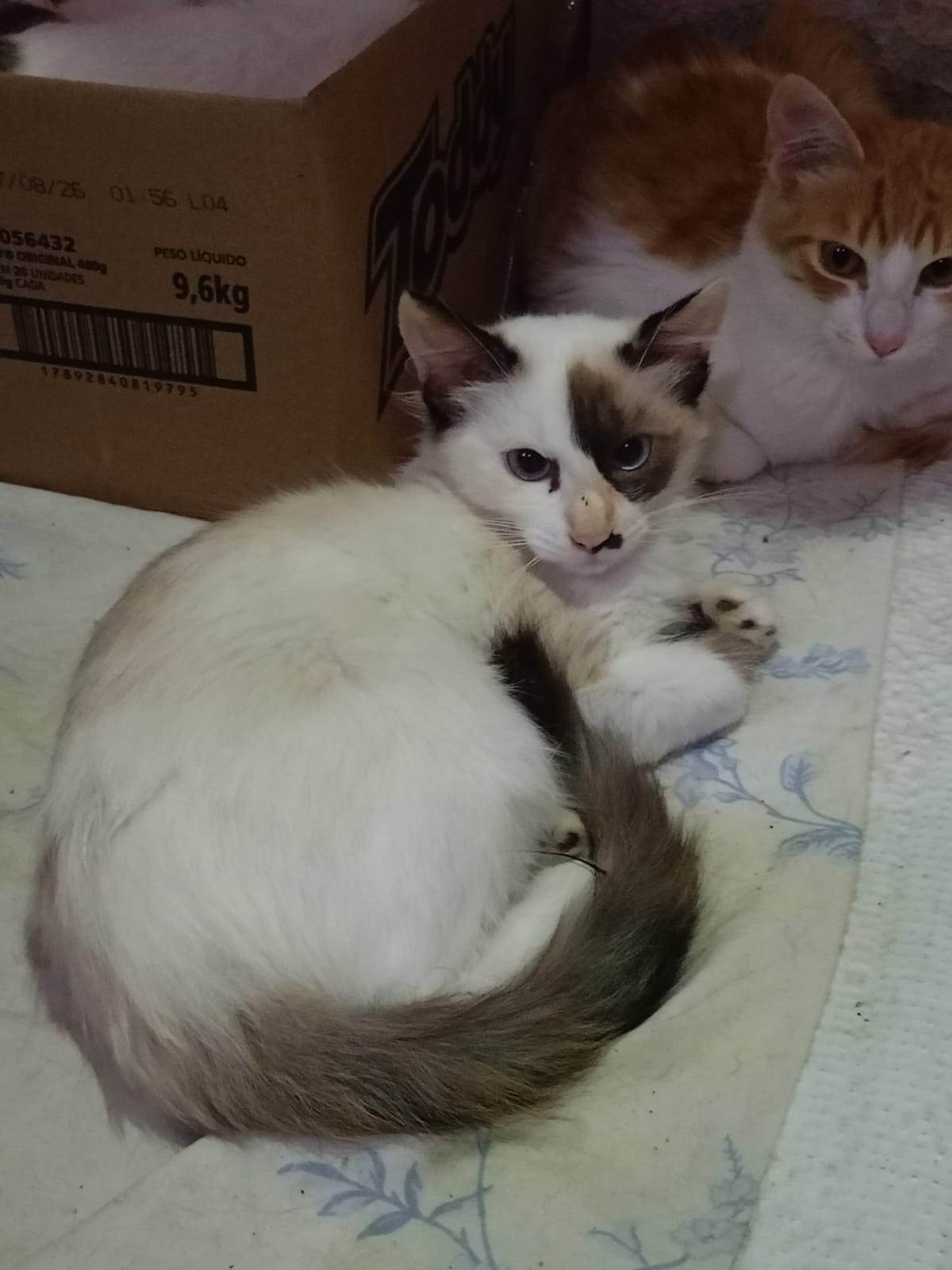 Conheça a Marie, uma adorável gatinha. Com apenas 5 meses de idade, ela possui uma pelagem branca com algumas manchas marrom , o que destaca ainda mais seu charme. Pequena e cheia de personalidade, Marie equilibra perfeitamente seu temperamento calmo com uma incrível vontade de brincar. Ela é a companhia ideal para famílias que possuem uma casa com quintal, já que adora correr e explorar.