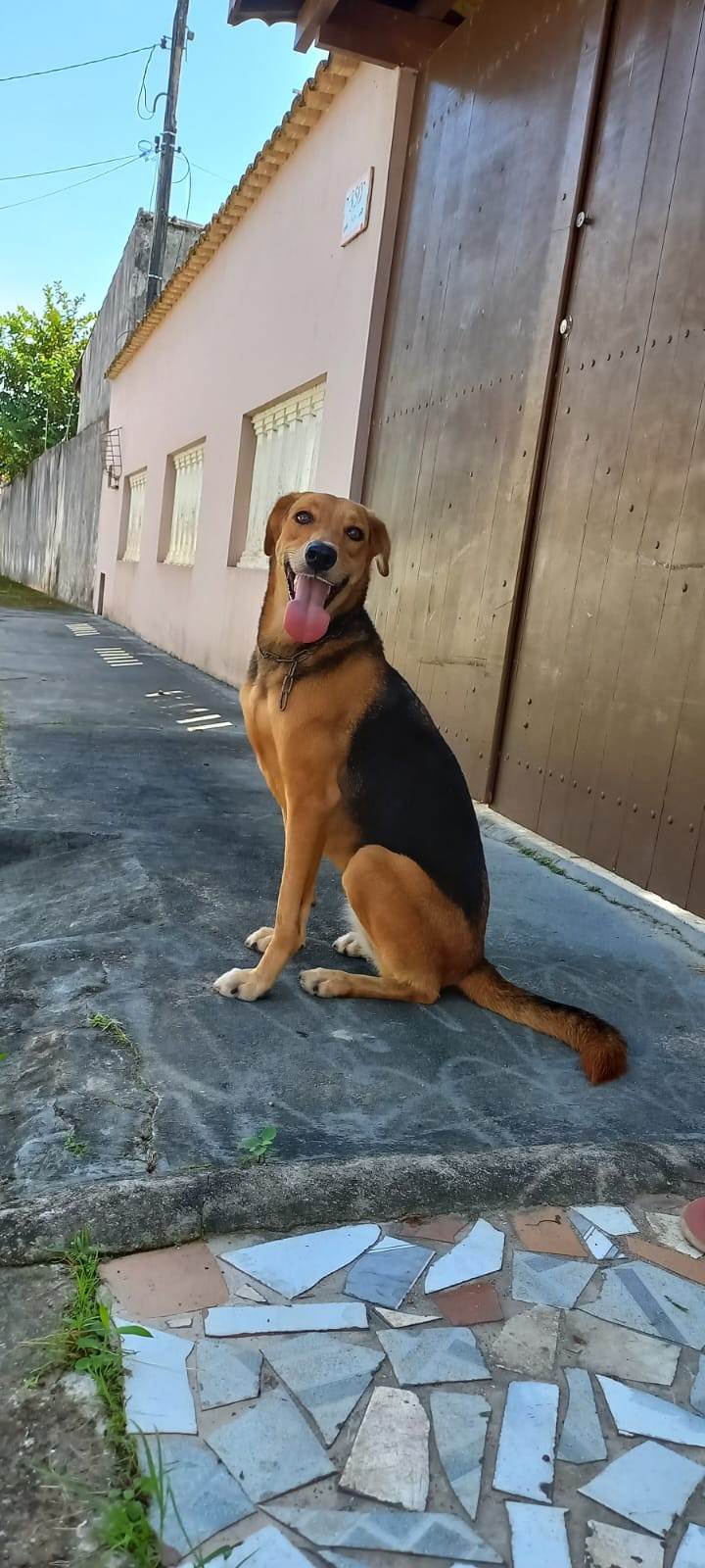 A cadela é muito dócil e amorosa, castrada e cheia de saúde