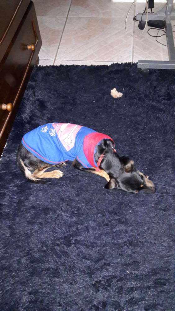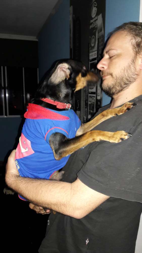 Encontrei o Moby próximo à avenida dos Autonomistas em um posto Alê. Eu mandei castrar e vacinar. Tomou V10. Moro num pequeno apartamento de 54m2 e já tenho 2 pets de rua. Impossível ficar com mais esse bebê. Estou desesperado pra encontrar um lar amoroso e aconchegante pra ele.