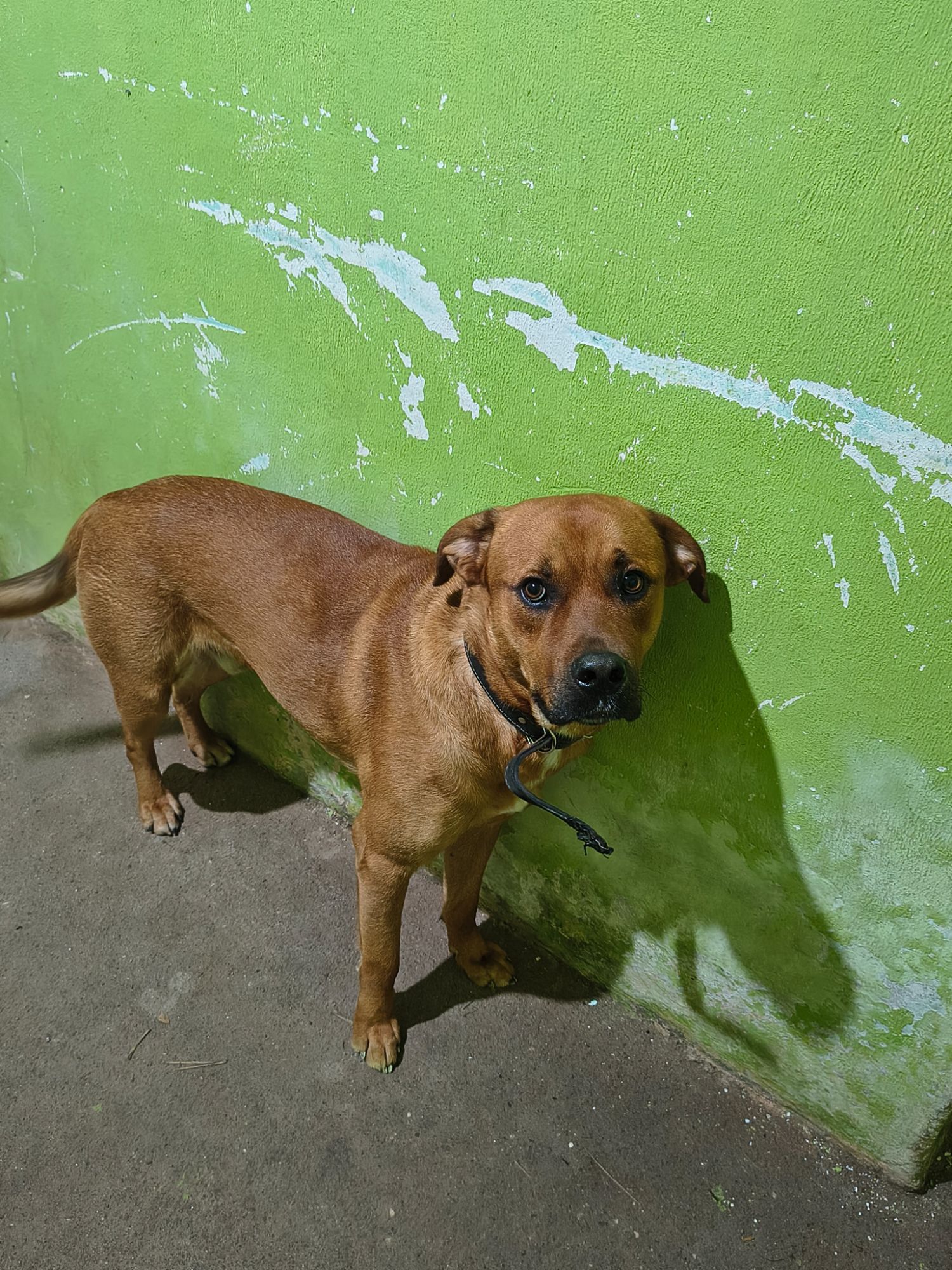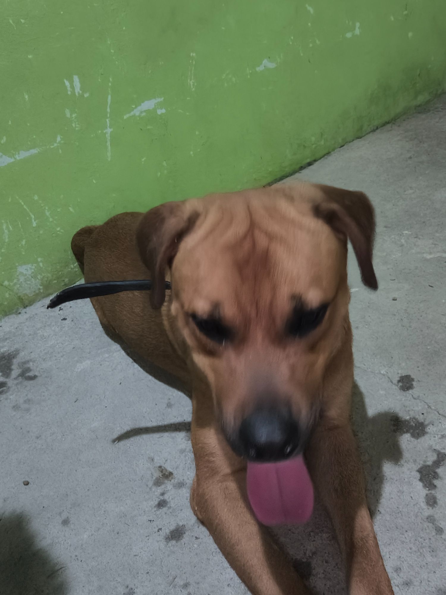 Foi abandonado no viaduto, estou procurando um lar para ele, está em um lar temporário pois não posso mante-lo em casa pois não tenho autorização