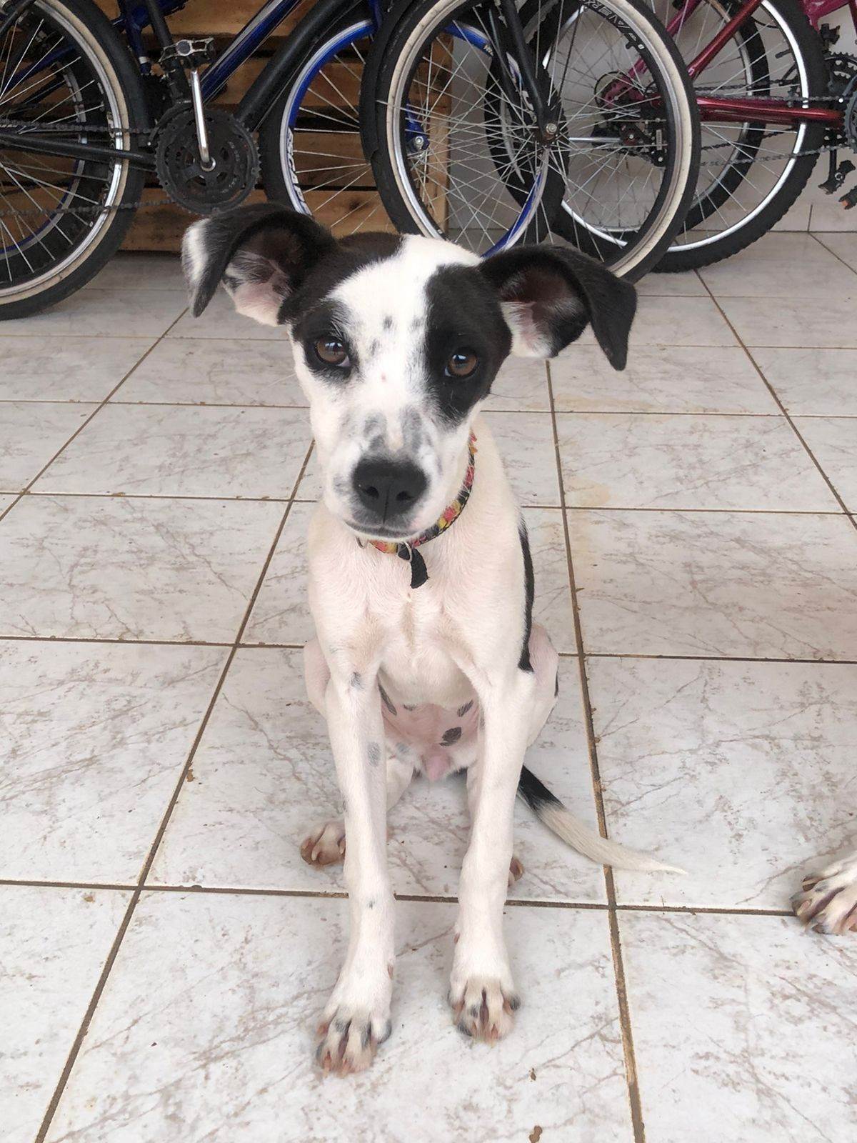 Cachorrinha dócil e brincalhona que foi encontrada junto de sua irmã em um estado de desnutrição.