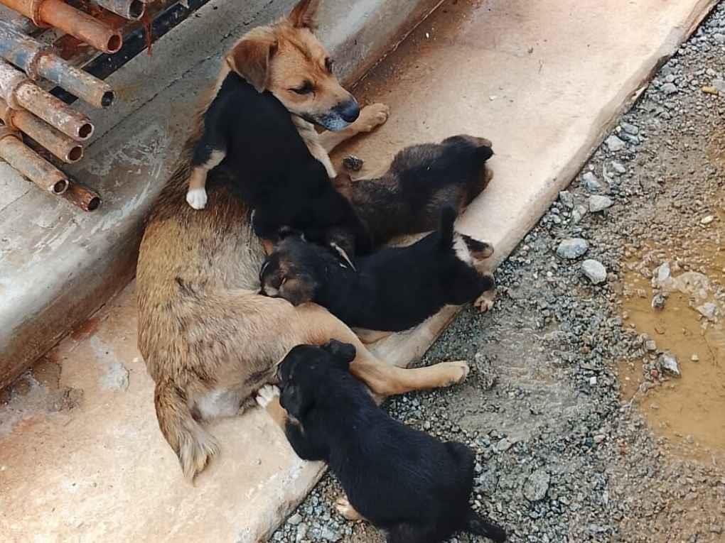 Trabalho em uma obra da Sabesp e uma cadela em situação de rua deu cria dentro do canteiro. Inicialmente eram 7 filhotes, porém conseguimos doar 3. Atualmente restam 4 filhotes, nascidos em 31/12/2025, ou seja, estão com cerca de 1 mês de vida.