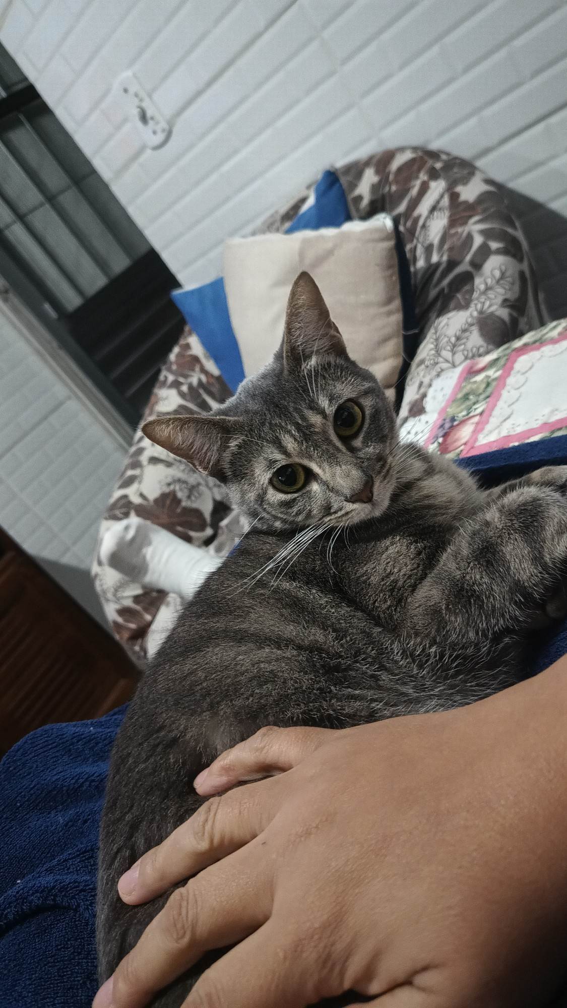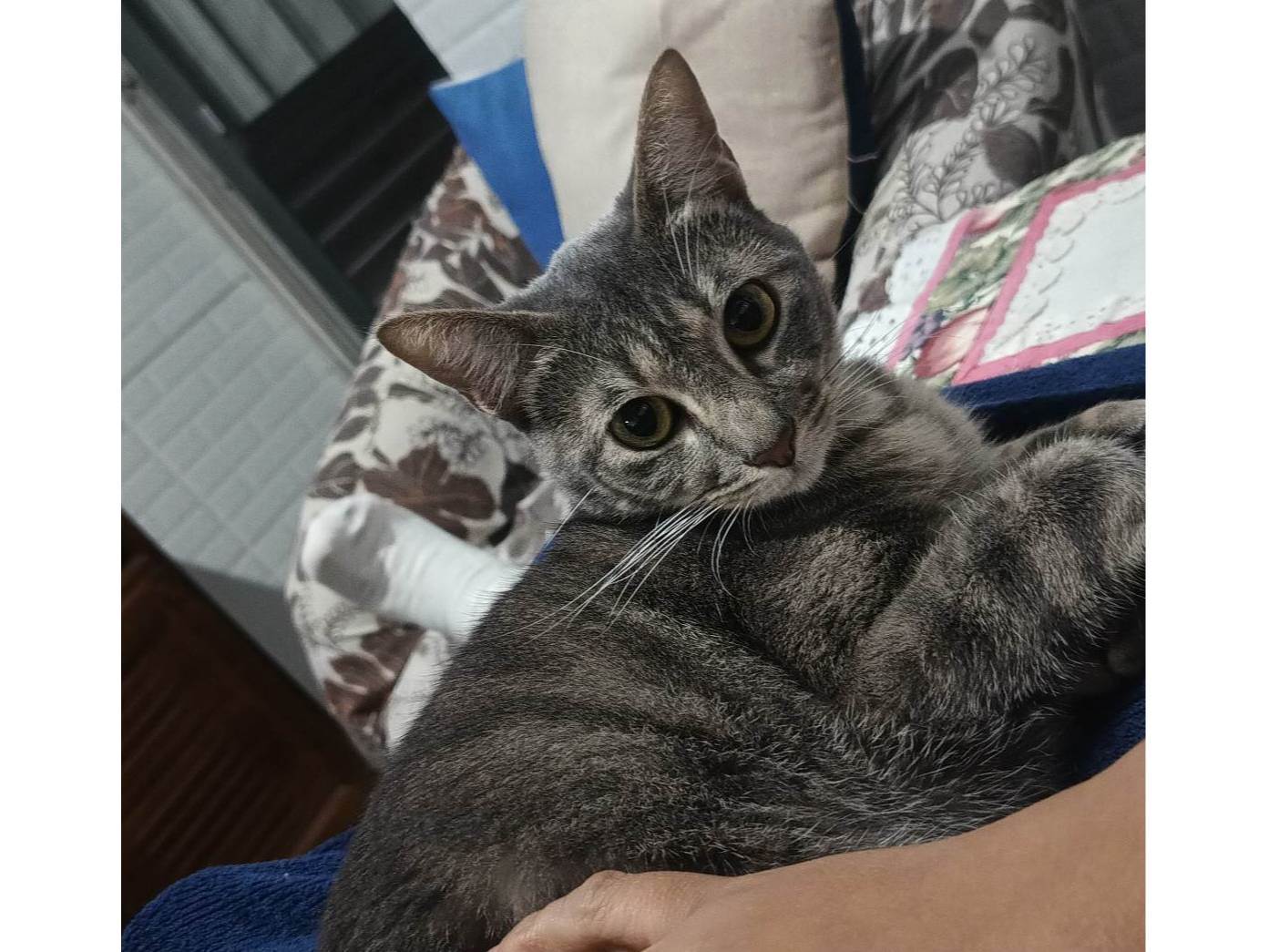 Ela e dócil, castradaPelagem e tigrada cinza fugiu da rua Olavo Bilac Parque Estuário Vicente de Carvalho por favor se tiver informação 13991635556
