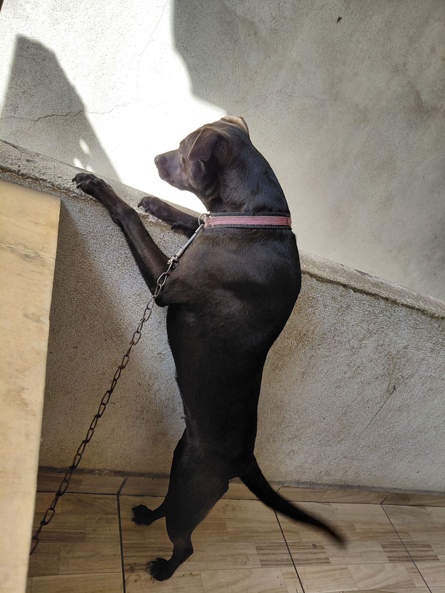 Cachorra forte, estamos doando pra pessoas que tenha fazenda ou roça ou quintal bastante grande, pq ela precisa de espaço, e aqui em casa não está dando mais pra ela infelizmente.