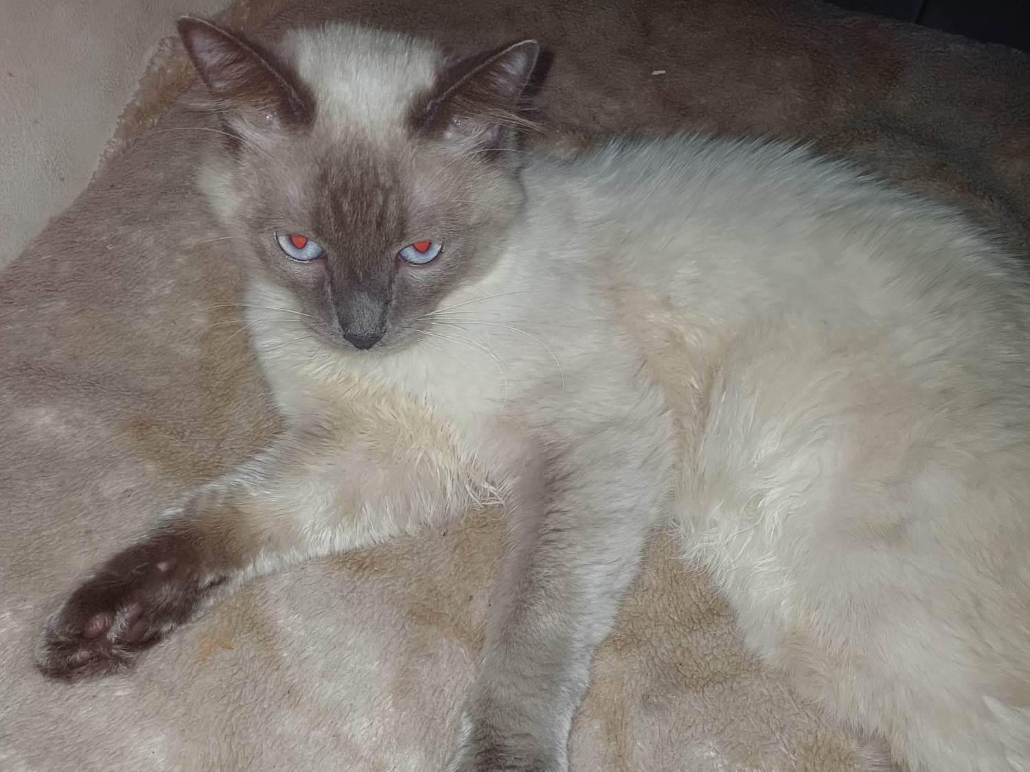 Gatinho branco de pelagem longa branca e rostinho cinza muito dócil e carinhoso,