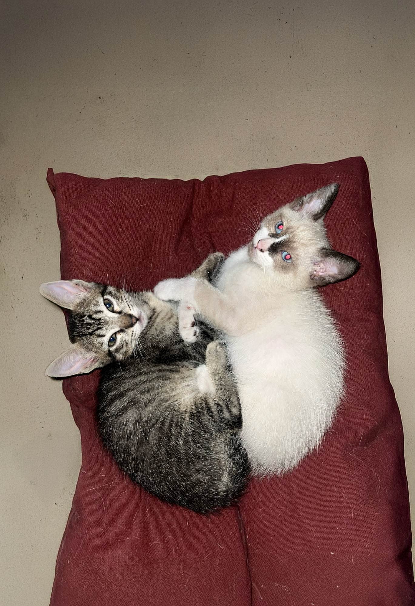 Cisso e Celso  Macho   Raça: SRD-ViraLata  Porte: Pequeno   Idade: 2 a 6 meses Pelagem: Rajada    A mamãe foi resgatada por mim enquanto ainda estava gestante. Foram 4 e todos sobreviverem e são muito saudáveis. Brincam muito, conversam (miando hahah), comem ração seca e usam a caixinha de areia direitinho.