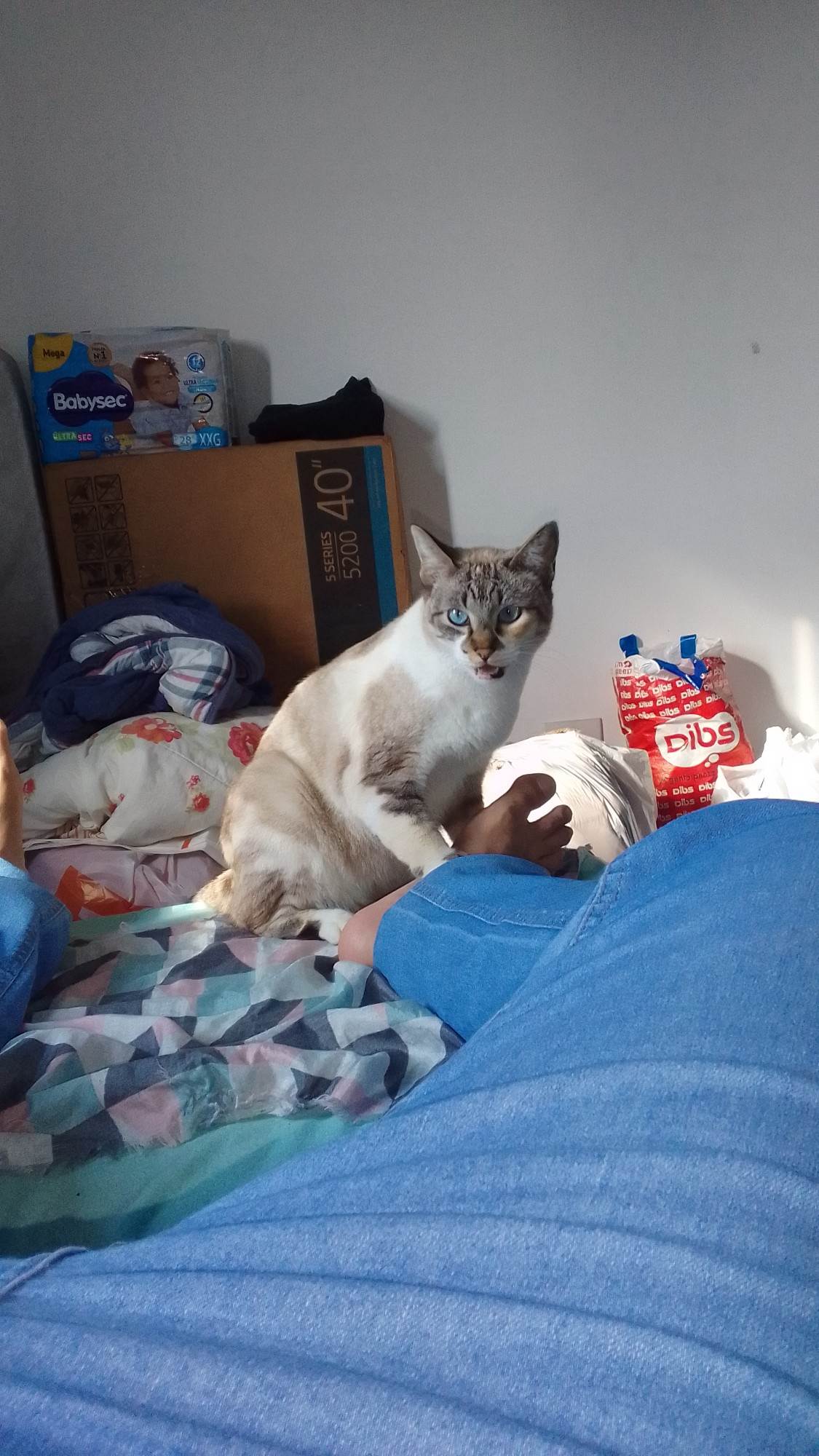 Gata branca com.manchinha marrom