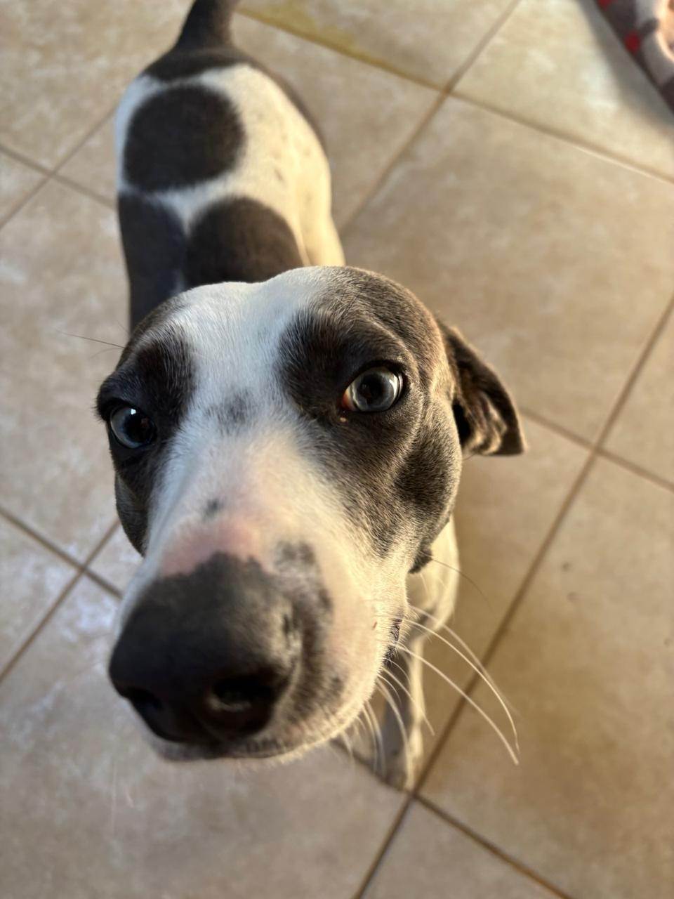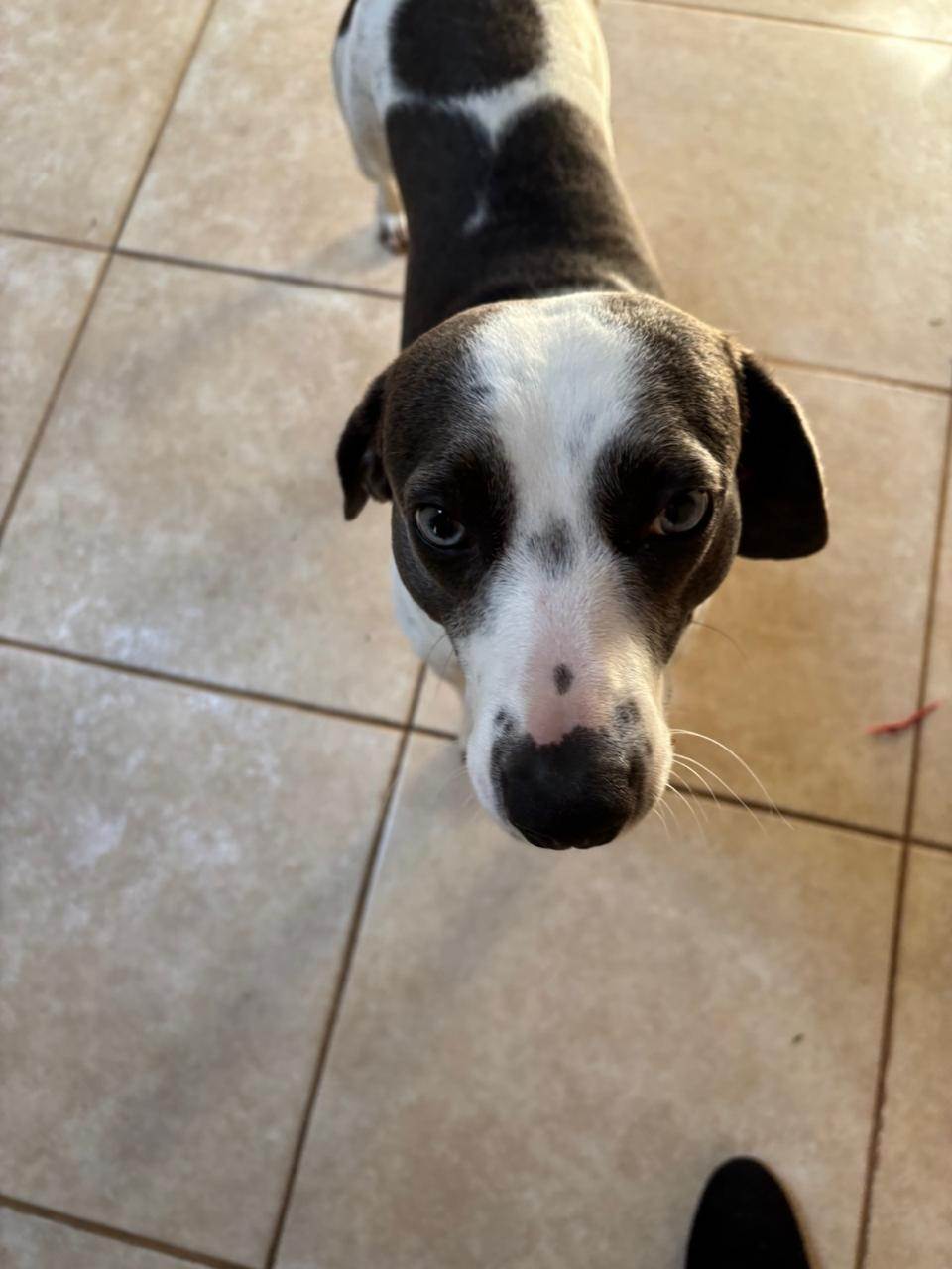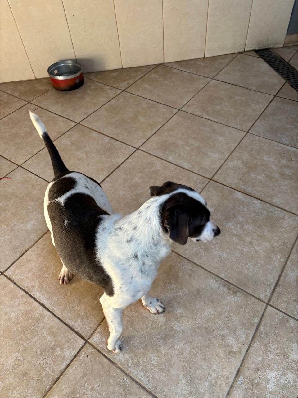 Adote o Ted, Cachorro SRD-ViraLata de pelagem Branca e preta e temperamento dócil. Ele se adapta bem a residências com quintal e ama brincar