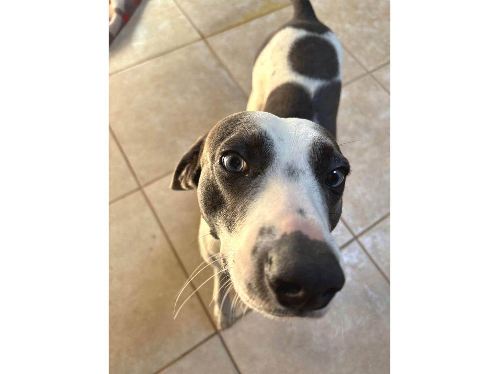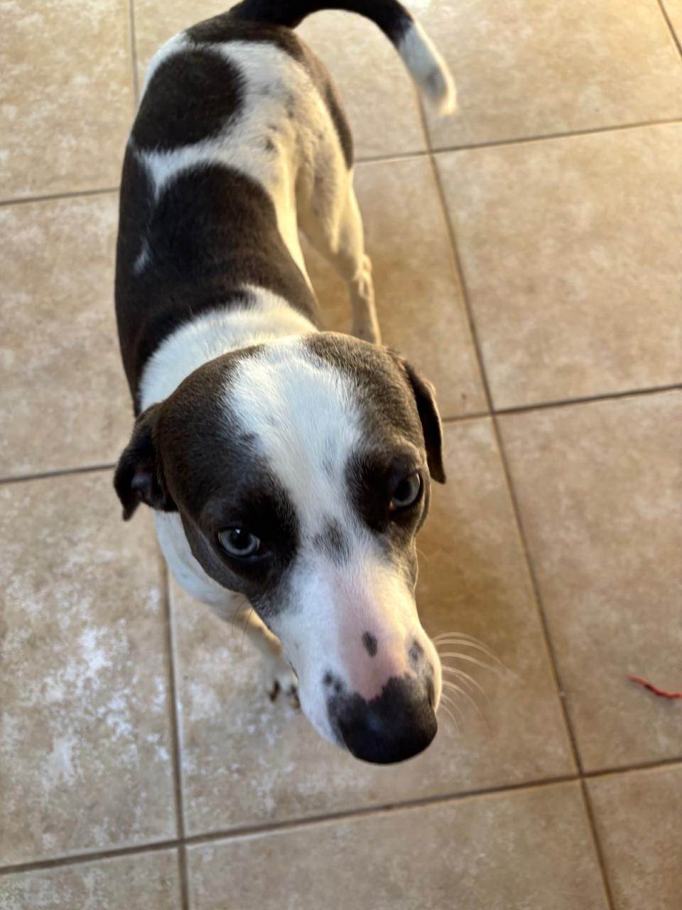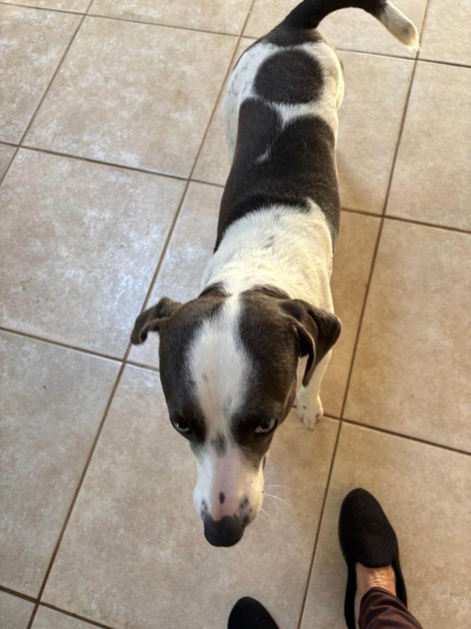 Adote o Ted, Cachorro SRD-ViraLata de pelagem Branca e preta e temperamento dócil. Ele se adapta bem a residências com quintal e ama brincar