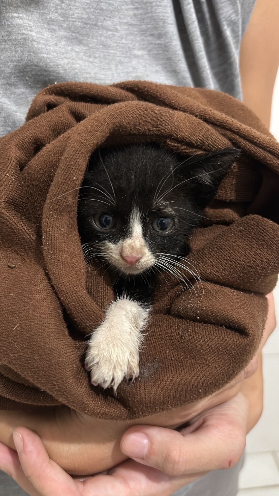 Encontrei esse gatinho na segunda-feira onde trabalho e passei longos três dias tentando resgatar ele, infelizmente não posso ficar, pois já tenho 6. Hoje graças a Deus consegui pegar, ele é um doce, muito carinhoso. Precisa de um lar com muito amor e carinho. Ainda está se adaptando com o mundo mas é cheio de amor, só precisa de um lar… o contato para quem tem interesse (19)989032809