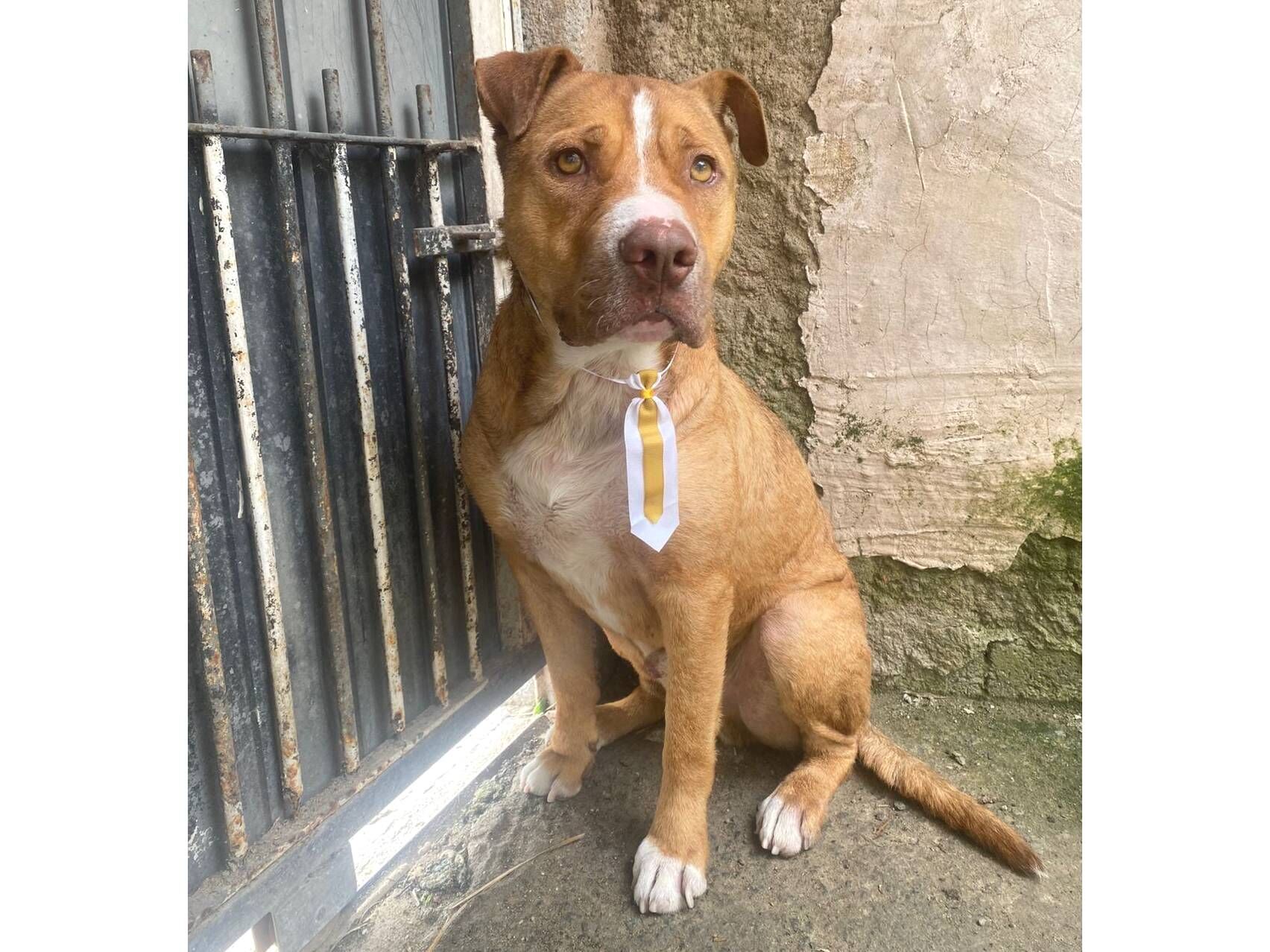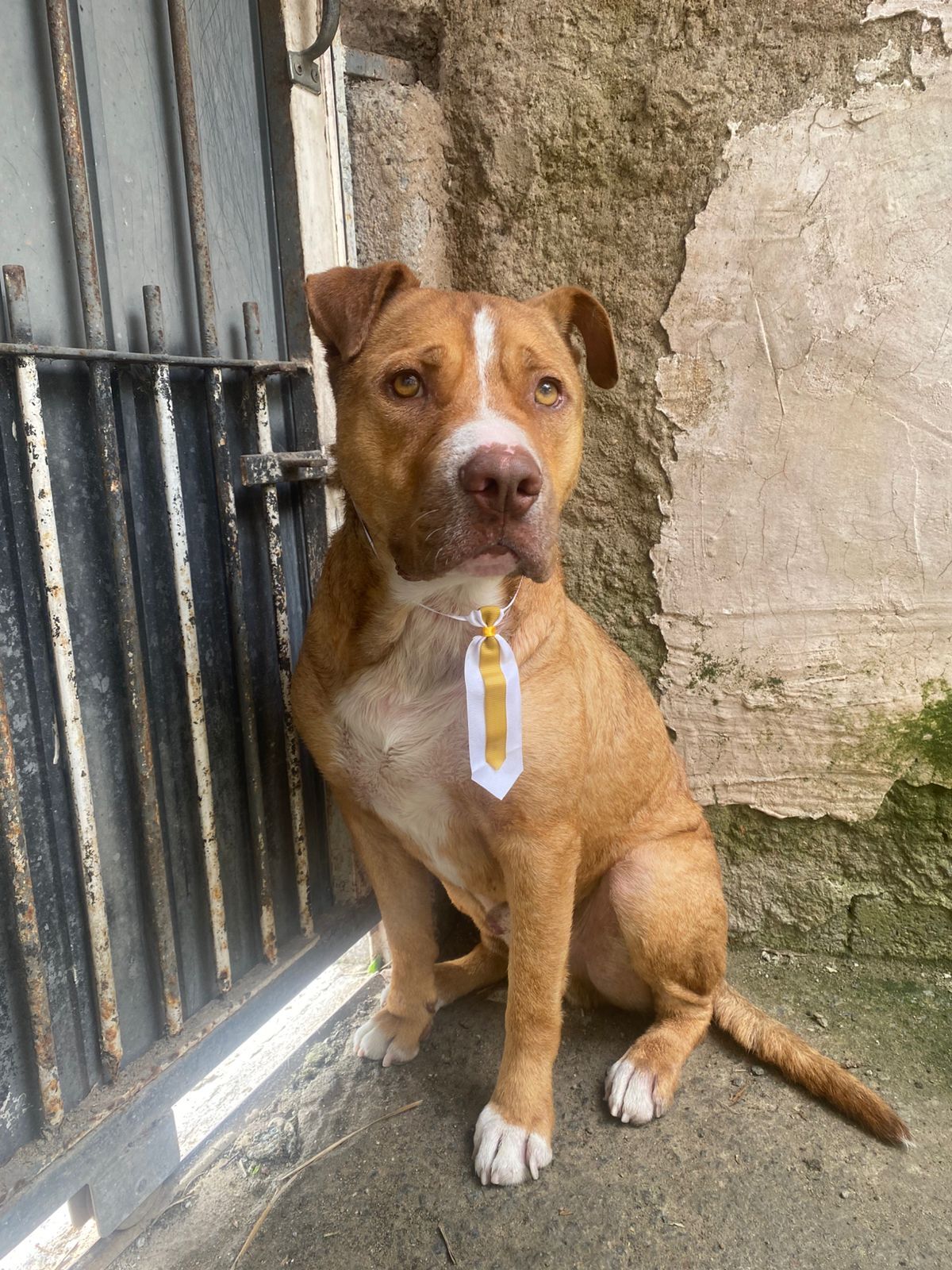 Bruce  Macho   Raça: Pit-Bull  Porte: Medio   Idade: 1 ano Pelagem: Amarelo