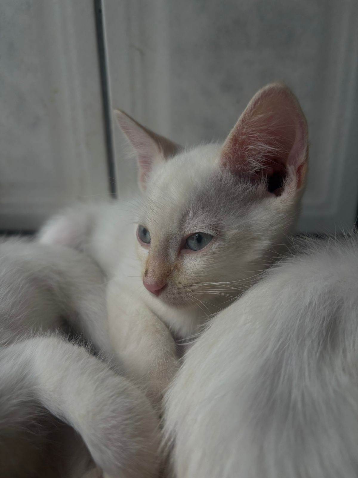 Estes adoráveis gatinho da raça Vira Lata, com pelagem branca, está à procura de um lar onde possa levar alegria e amor. Com idade entre 2 a 6 meses, ele é de porte pequeno, perfeito para qualquer espaço. Ele se destaca por seu temperamento dócil, brincalhão e sociável, sempre disposto a fazer novas amizades e compartilhar momentos de diversão. Além disso, tem uma personalidade independente, mas gosta de um pouco de atenção e carinho, o que o torna também carente. É um animal que se adapta bem tanto em casas com quintal quanto em apartamentos, oferecendo flexibilidade para todo tipo de moradia. Este gatinho tem uma excelente relação com outros gatos, assim como com crianças e até mesmo com desconhecidos, garantindo uma convivência harmoniosa. Se você está em busca de um companheiro especial, que combina tranquilidade e energia na medida certa, ele pode ser a escolha perfeita para fazer parte da sua família e transformar seu lar em um ambiente ainda mais acolhedor.