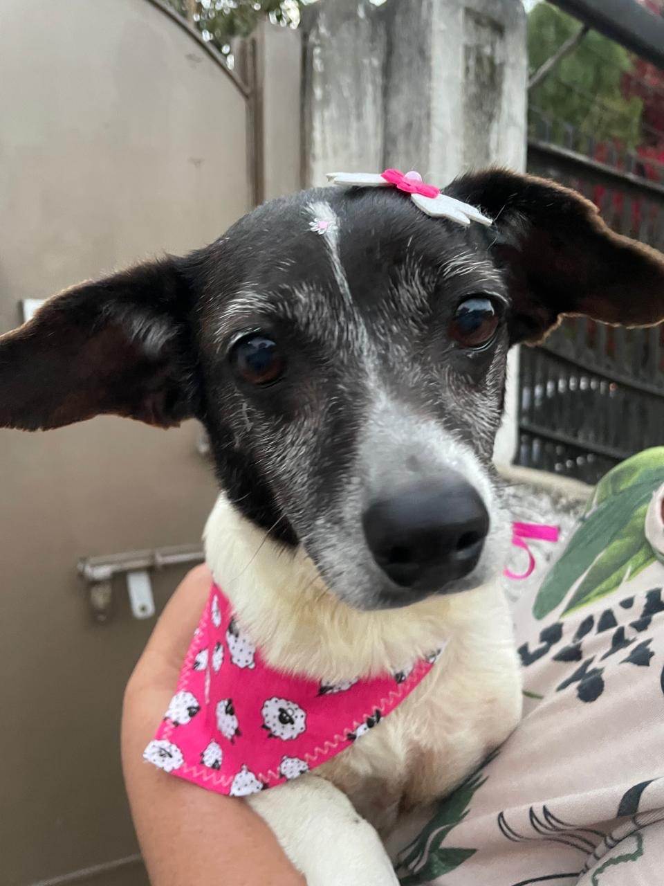 A boneca é uma cachorrinha muito carinhosa, dócil, amorosa e brincalhona. A dona da boneca infelizmente faleceu há alguns dias e ela ficou sozinha na casa e para não deixar ela sozinha e na rua pegamos ela, levamos ela no pet shop para tomar banho e remédio para pulga. Ela é ume amorzinho e merece todo amor e carinho, Adote a Boneca!!!!!
