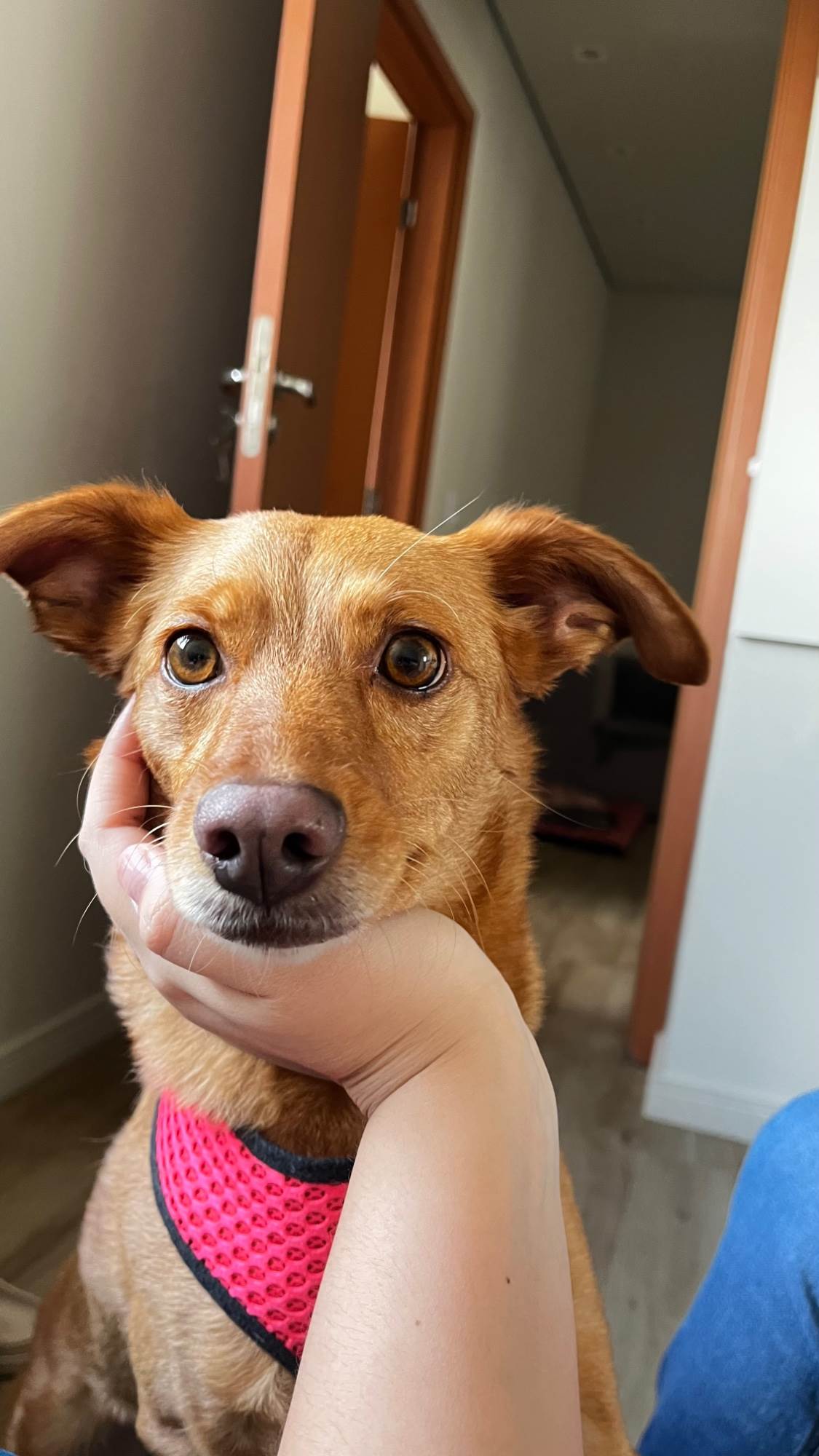 Mel é uma caramela que precisa de um lar. Muito carente e companheira.