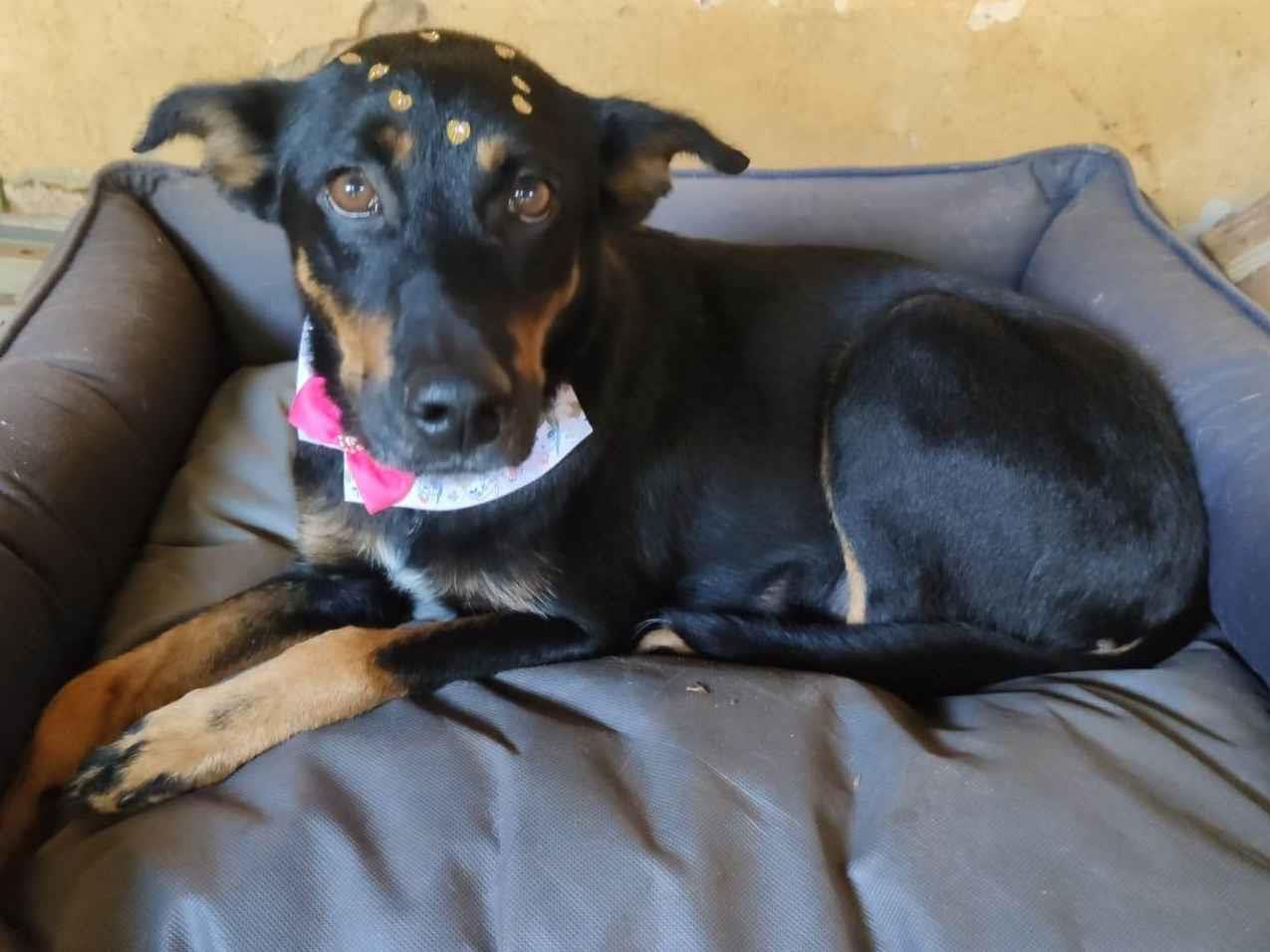 A Pretinha foi resgatada juntamente com a sua ninhada, porém ela foi a única que ainda não achou um lar. Ela é extremamente amoroso com pessoas, porém é agressiva com outros animais, ela deve ser filha única. É muito boa para guarda e para sítios.