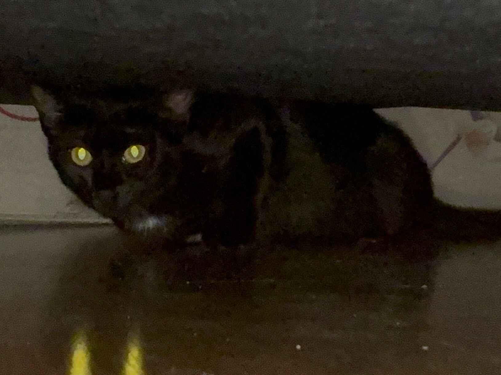 Gatinha resgatada, ainda bem medrosa, precisa de paciência para se adaptar.