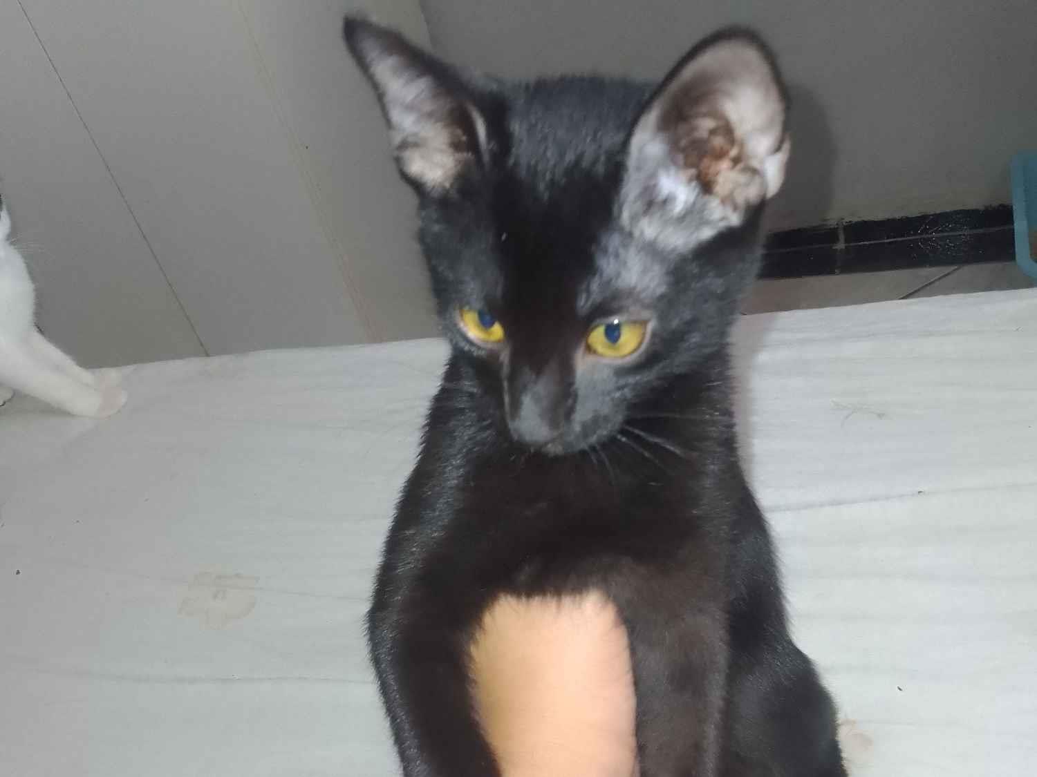 Conheça nosso adorável gato macho que ainda não tem nome! Ele é da raça American Shorthair, possui uma linda pelagem preta e está na faixa etária de 2 a 6 meses. Com porte médio, ele é um filhote cheio de vida e energia. Seu temperamento é brincalhão, sempre pronto para se divertir e explorar. Além disso, é sociável e se adapta bem ao convívio com desconhecidos, tornando-se uma ótima companhia para visitas.