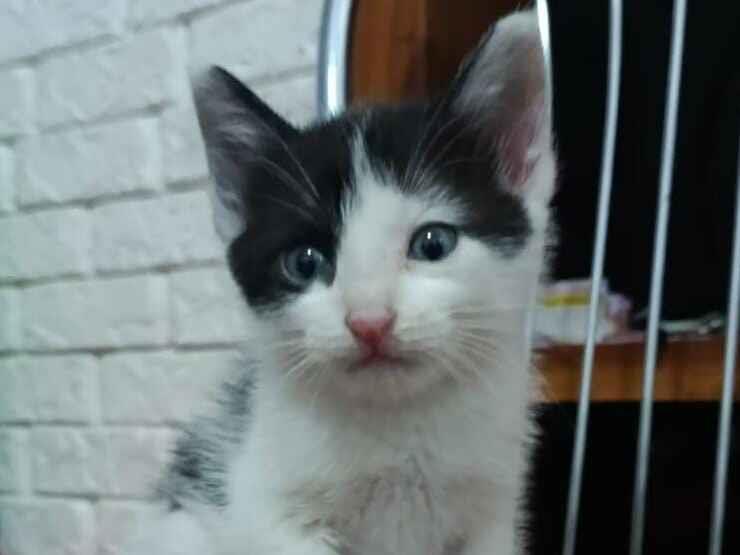 Panda é um adorável gatinho macho da raça SRD-ViraLata, com apenas 30 dias de vida. Ele possui uma pelagem linda, com predominância branca e manchas pretas, o que o torna ainda mais especial!