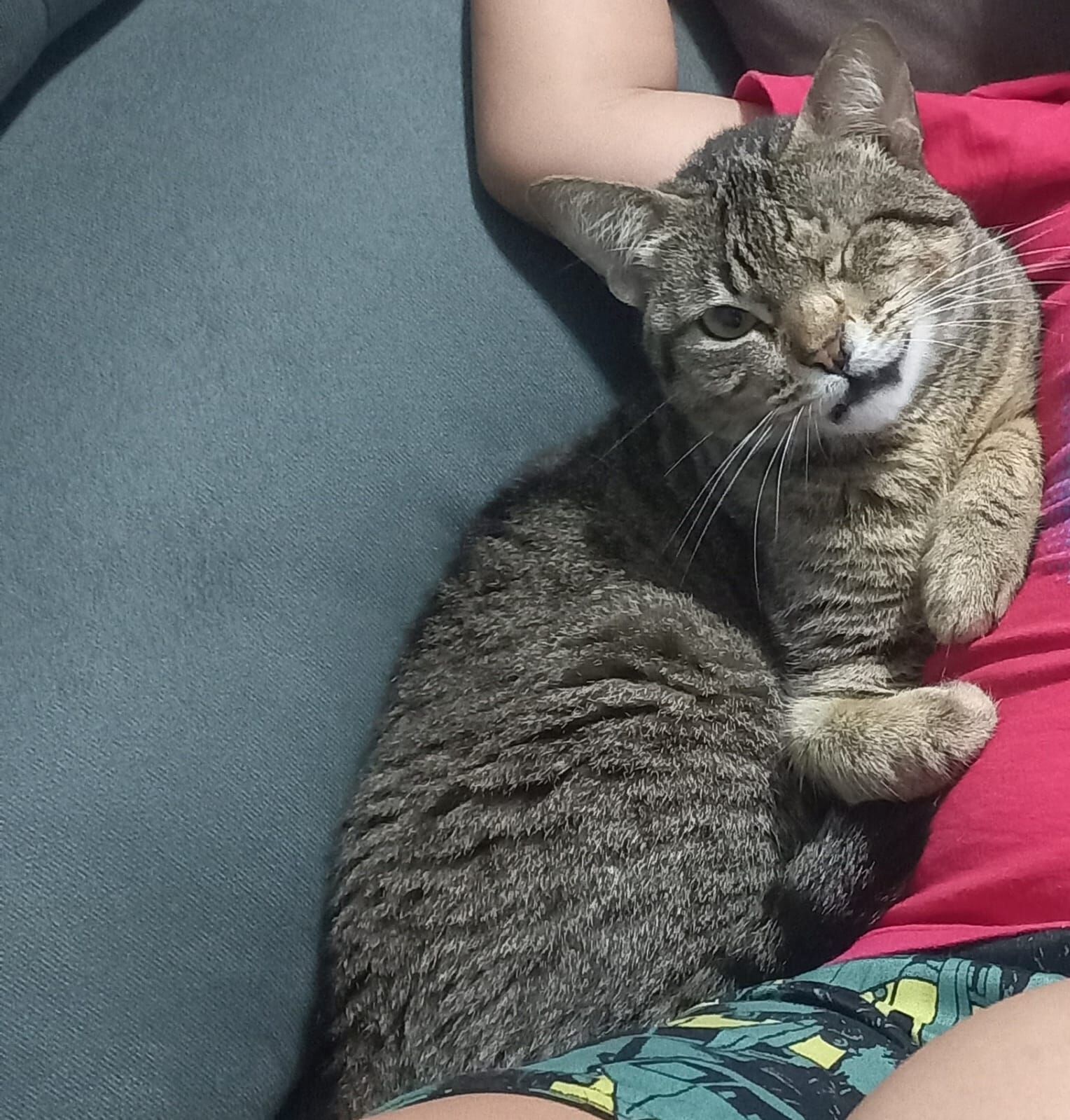 Zoey é uma gatinha bem dócil porem nasceu sem um dos olhos, deformidade de nascenca entretanto o outro olho ela enxerga bem. Foi encontrada abandonada mas ja esta castrada e vacinada. Infelizmente não podemos ficar com ela pois o outro gato que mora é bem arisco e idoso e bate muito nela, queremos doa-la para alguem que tenha muito amor.