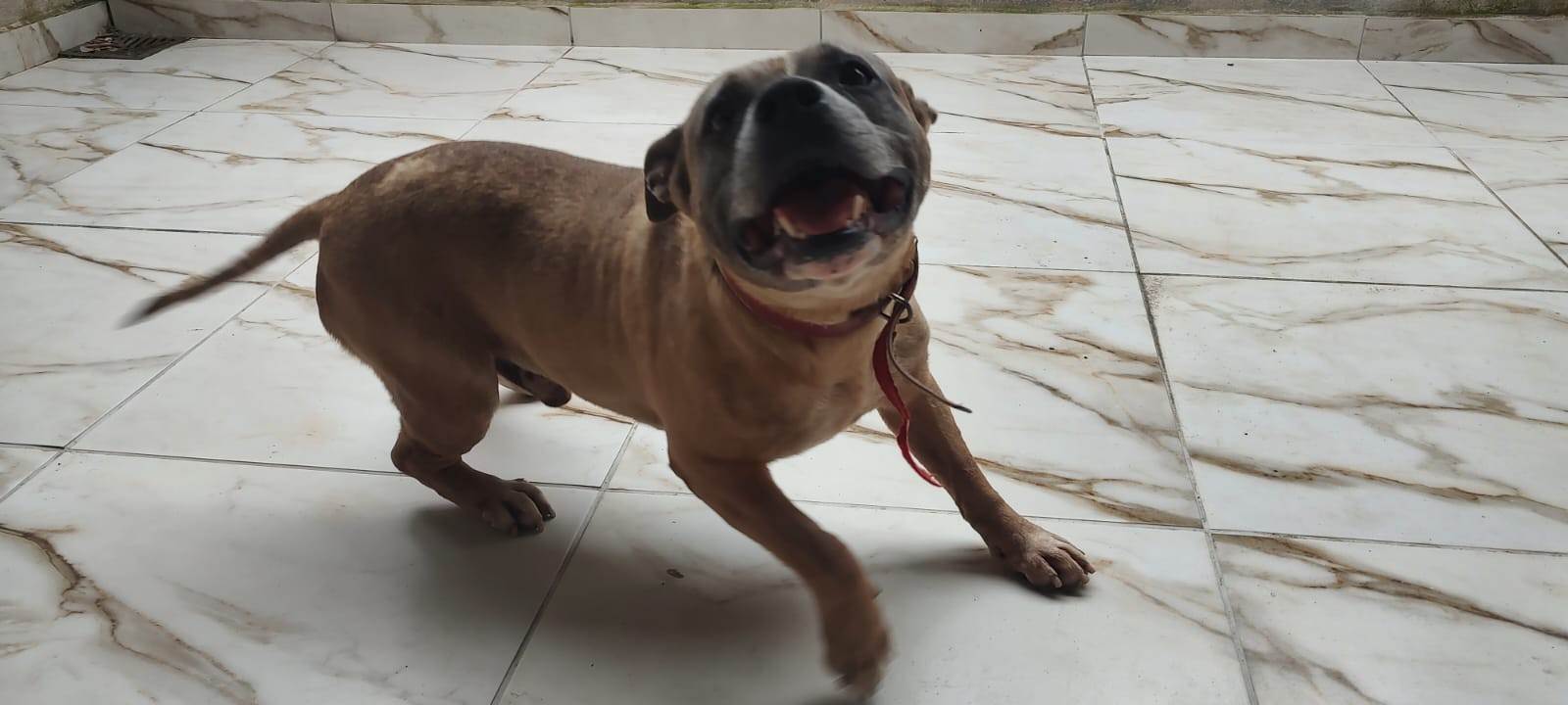 Conheça Nick, o Pit-Bull dócil e calmo, ideal para quem tem quintal. Perfeito com crianças, idosos e outros cães. Adote e ganhe um amigo fiel!