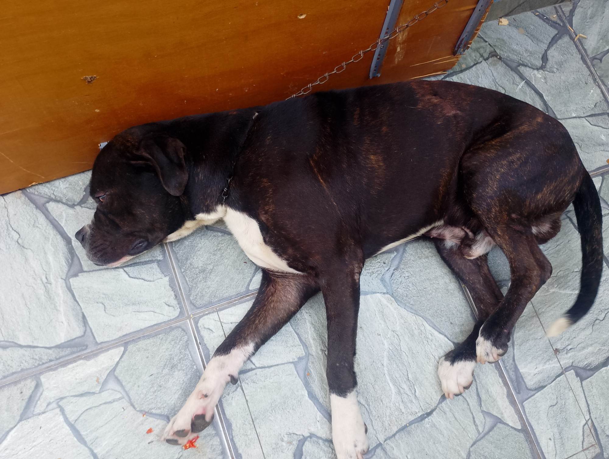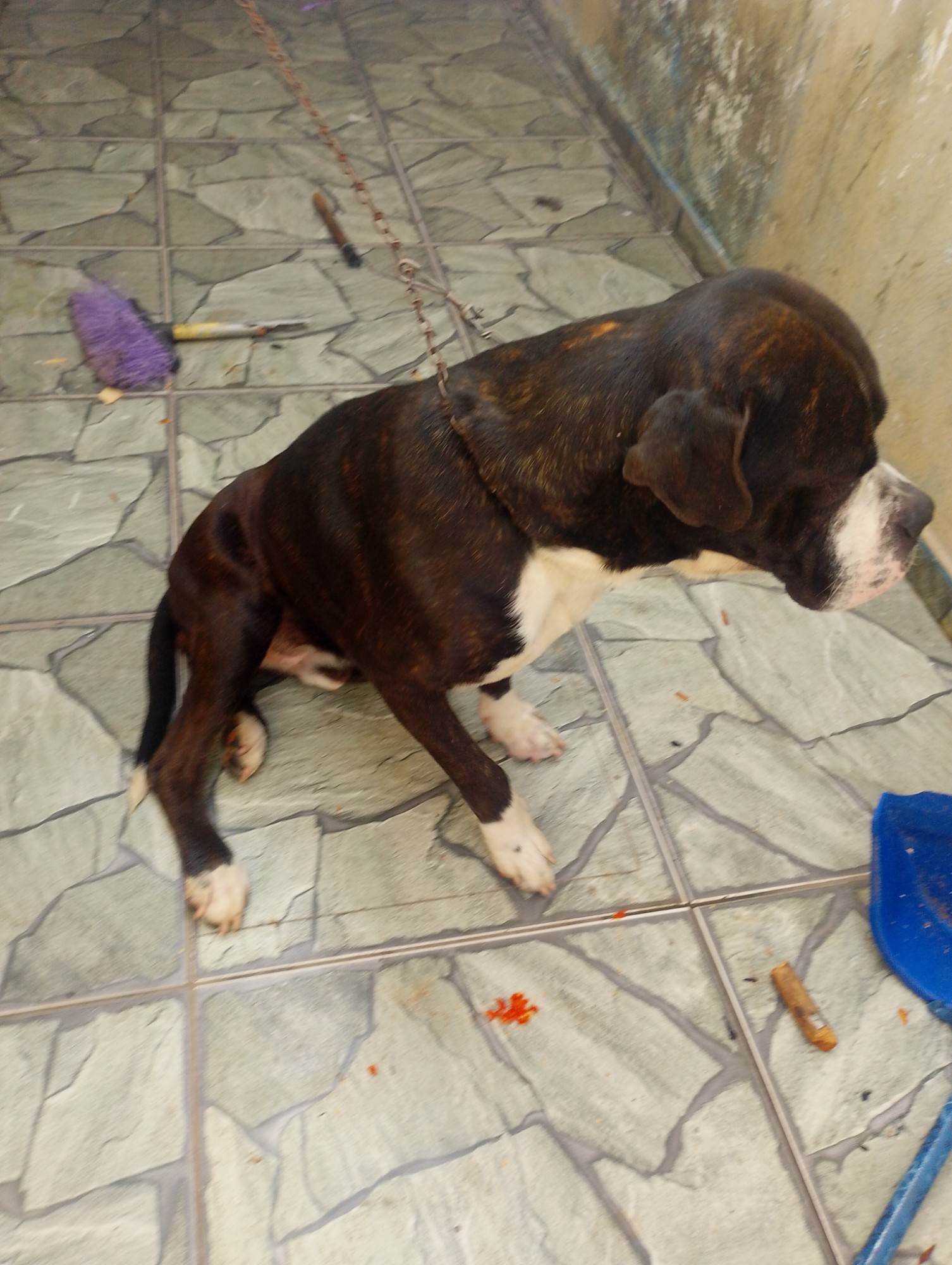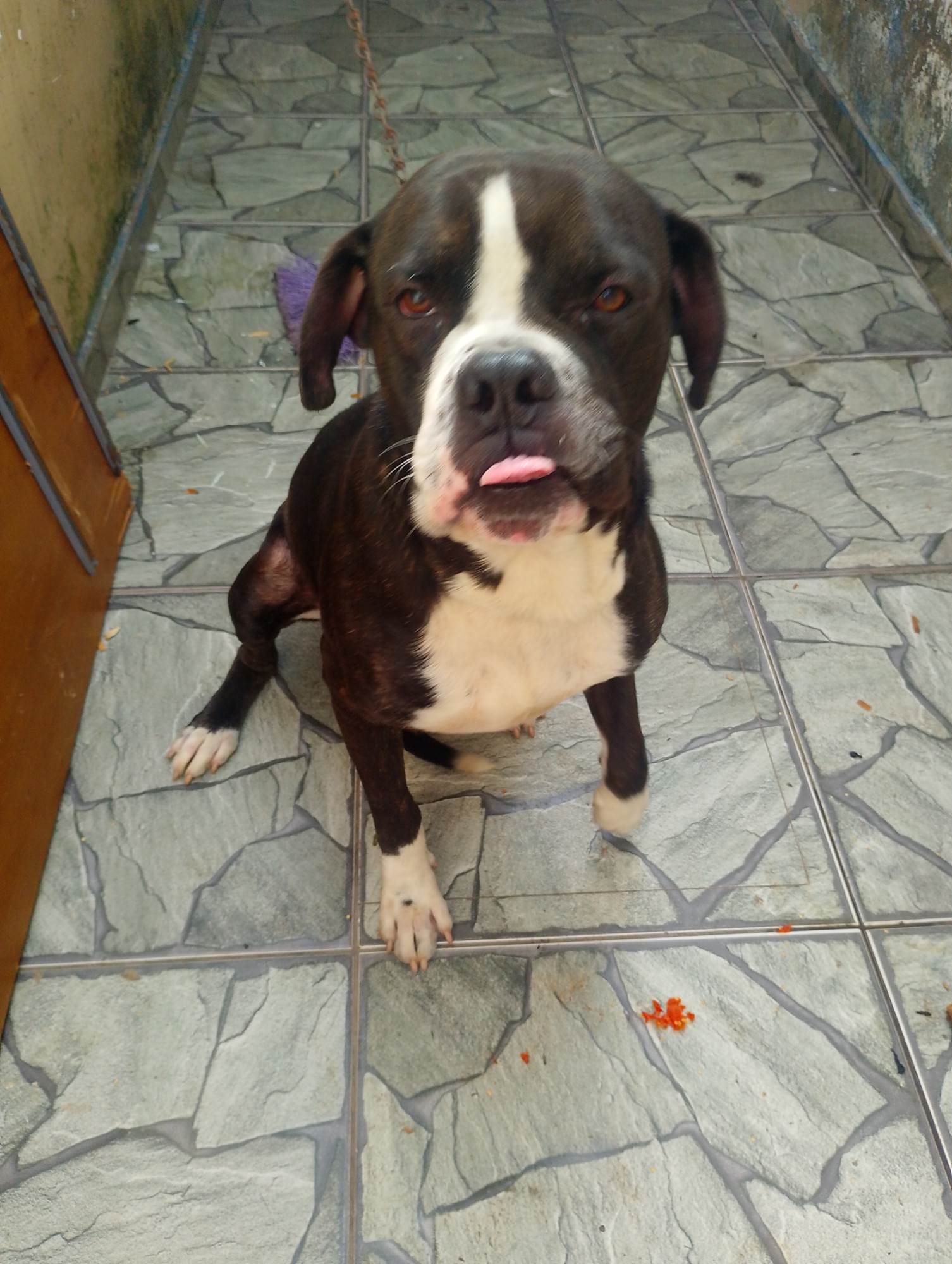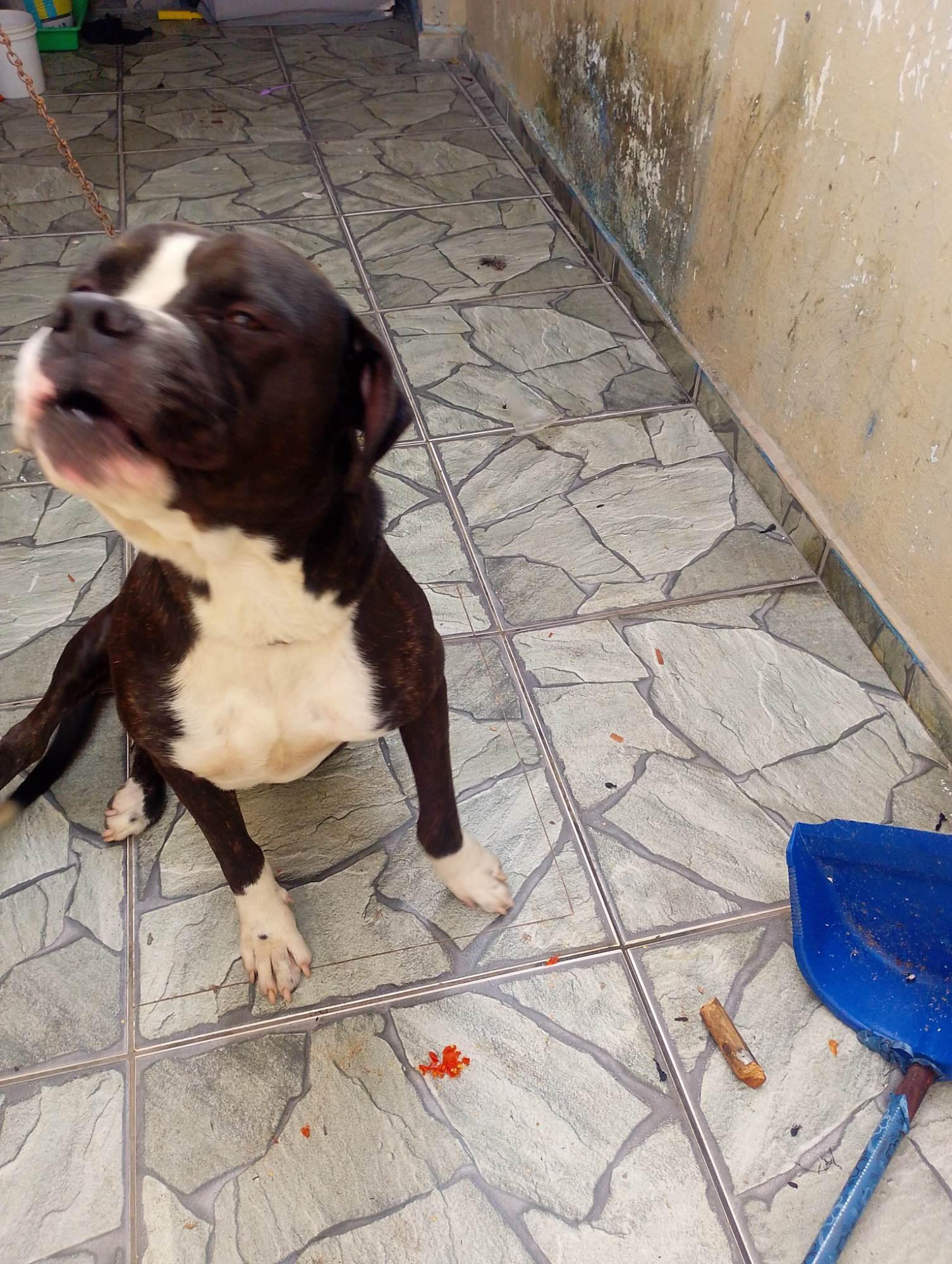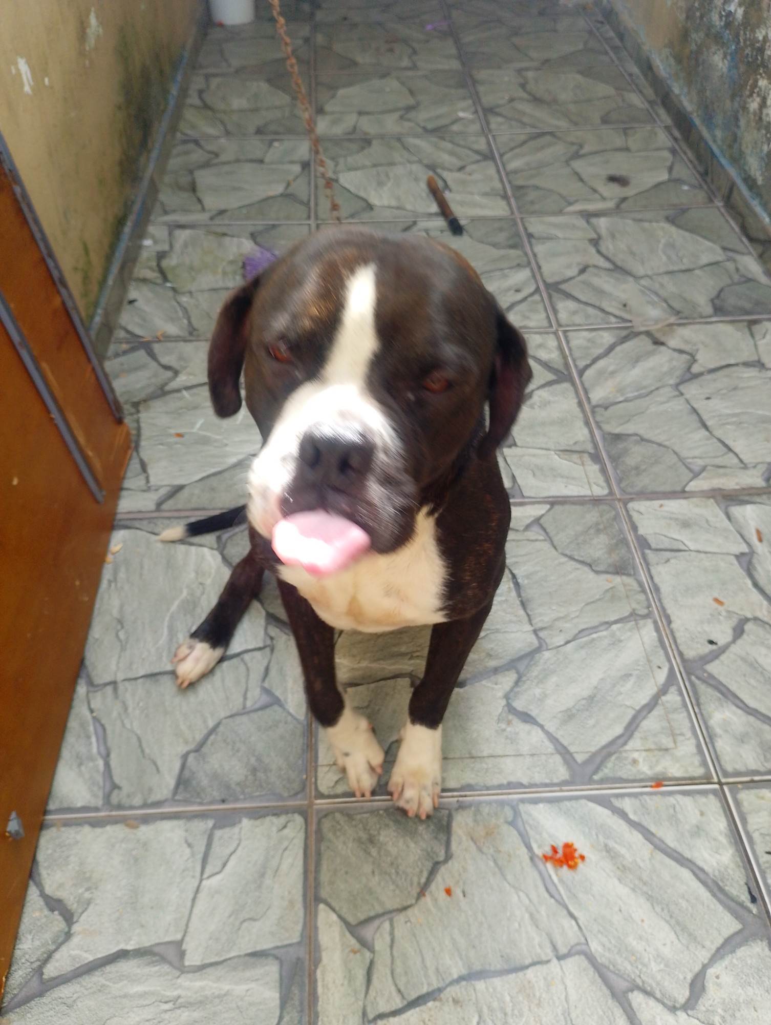 Cachorro brincalhão,porém a raça e Pitbull,que tive que me mudar e não a espaço pra ele por isso estou doando