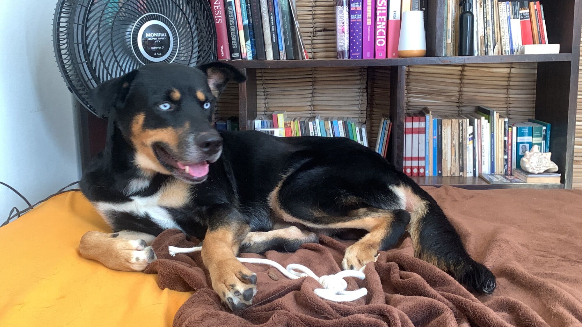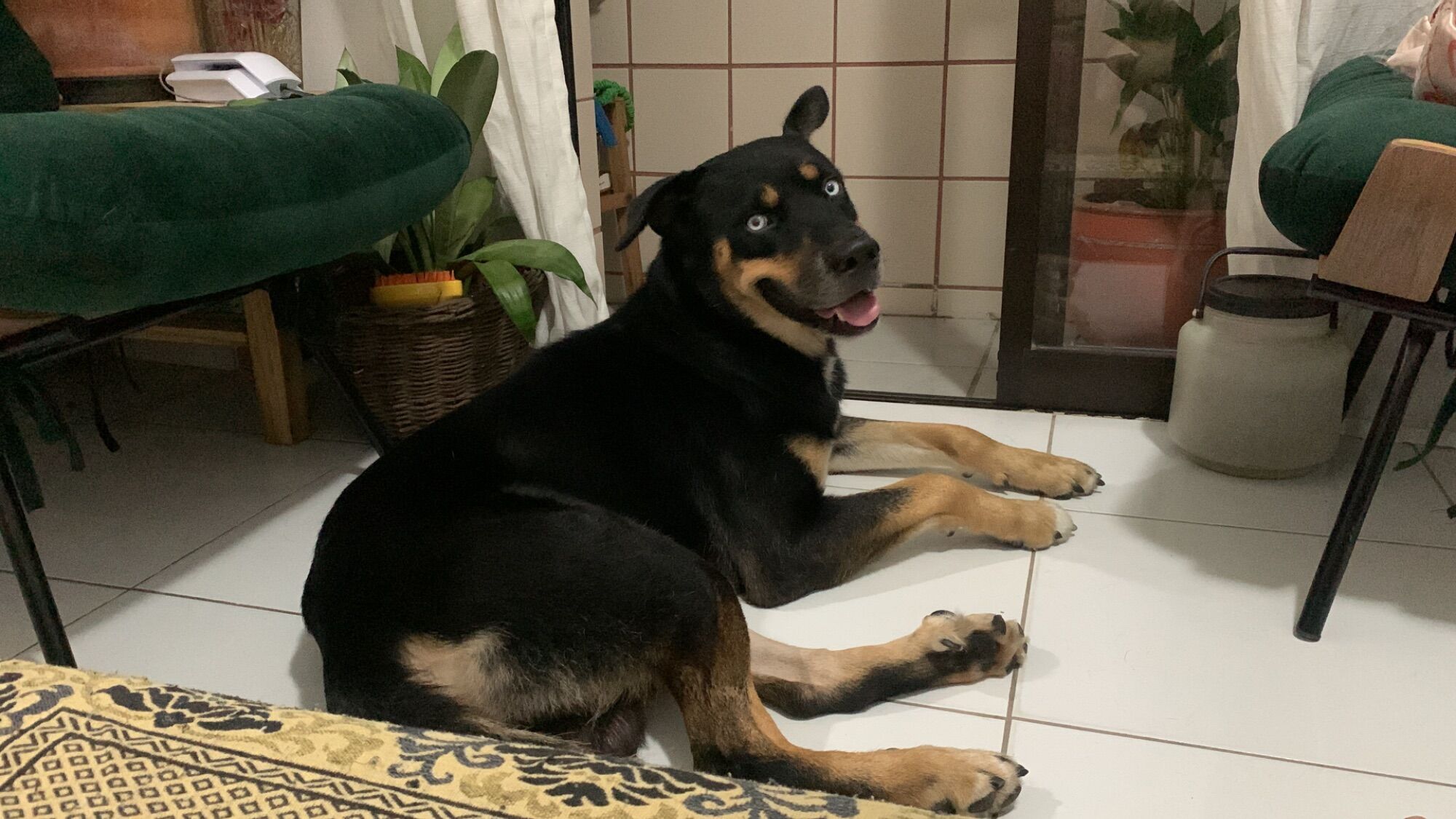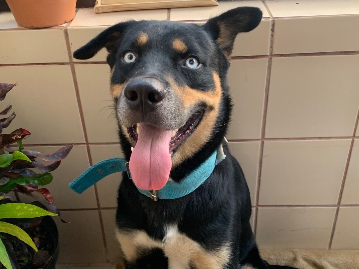 Rottweiller de olhos azuis, encontrado na Vila Guilhermina no dia 28 de janeiro. Dócil e tranquilo, não é reativo, não faz as necessidades dentro de casa. É um cachorro grande, precisa de espaço e uma rotina de estímulos, exercícios, brincadeiras. Adora correr na praia e tomar banho de mar.