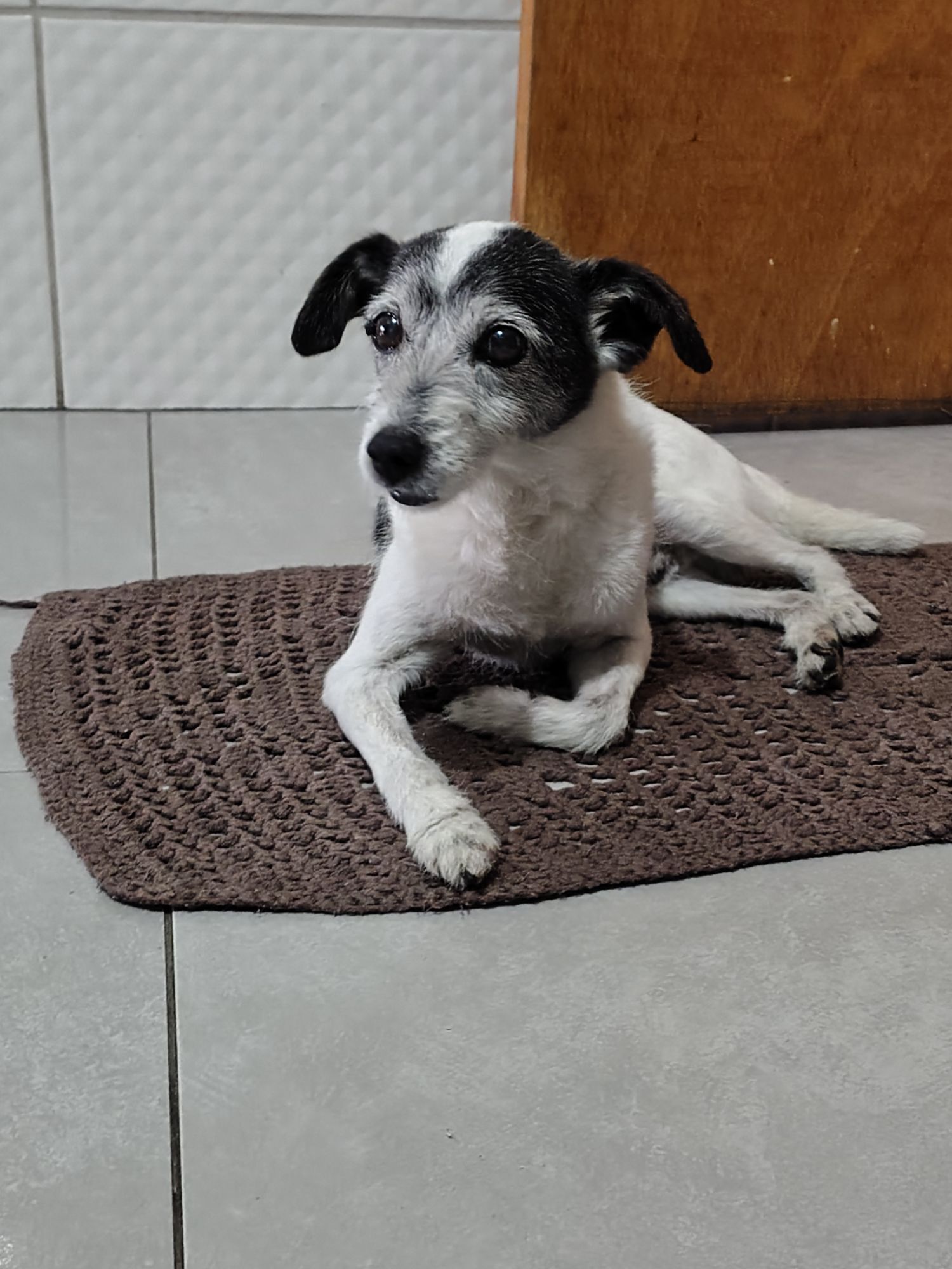 Pequeno, agitado, medroso, cansado da idade, mas ativo, não fica sem a companhia dos tutores