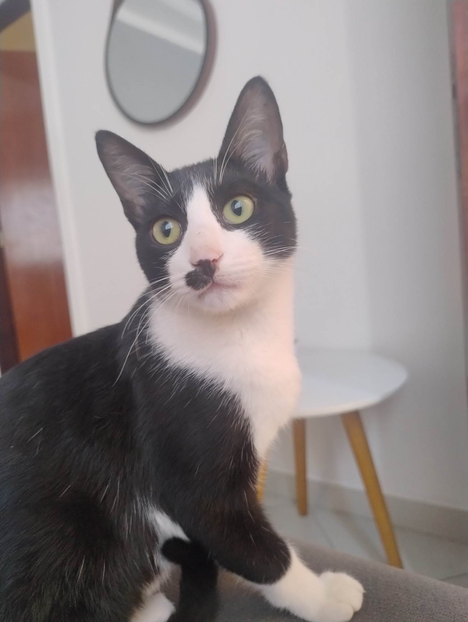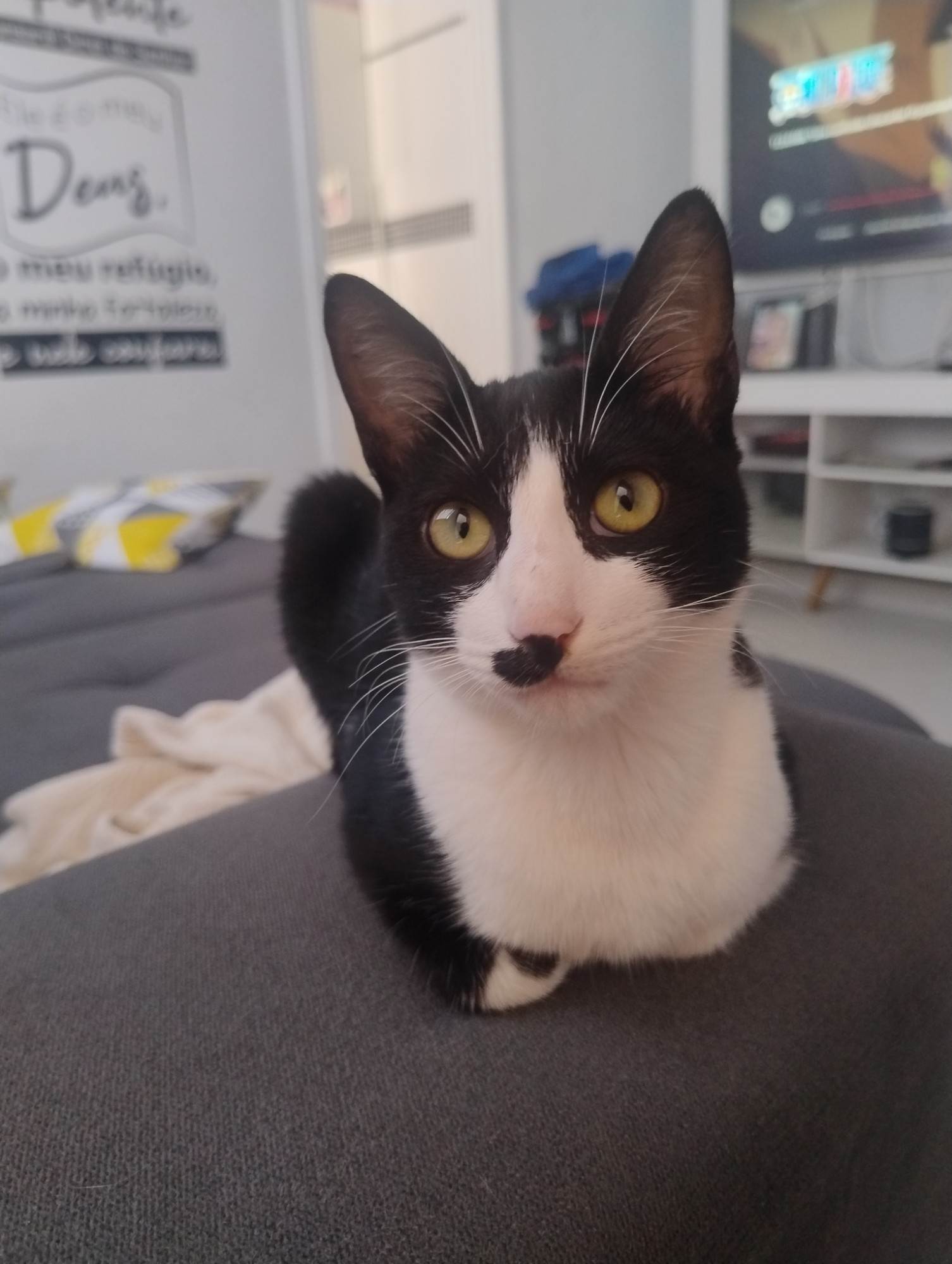 Este gatinho apareceu em minha casa e, embora eu tenha cachorros e não possa ficar com ele permanentemente, não quero que volte para a rua. Por isso, estou em busca de alguém especial que possa oferecer um lar acolhedor e seguro para o Teu. Se você está procurando um companheiro amoroso e sociável, Teu pode ser o novo membro perfeito para a sua família. Adote e ofereça a ele a chance de ter uma vida feliz e protegida.