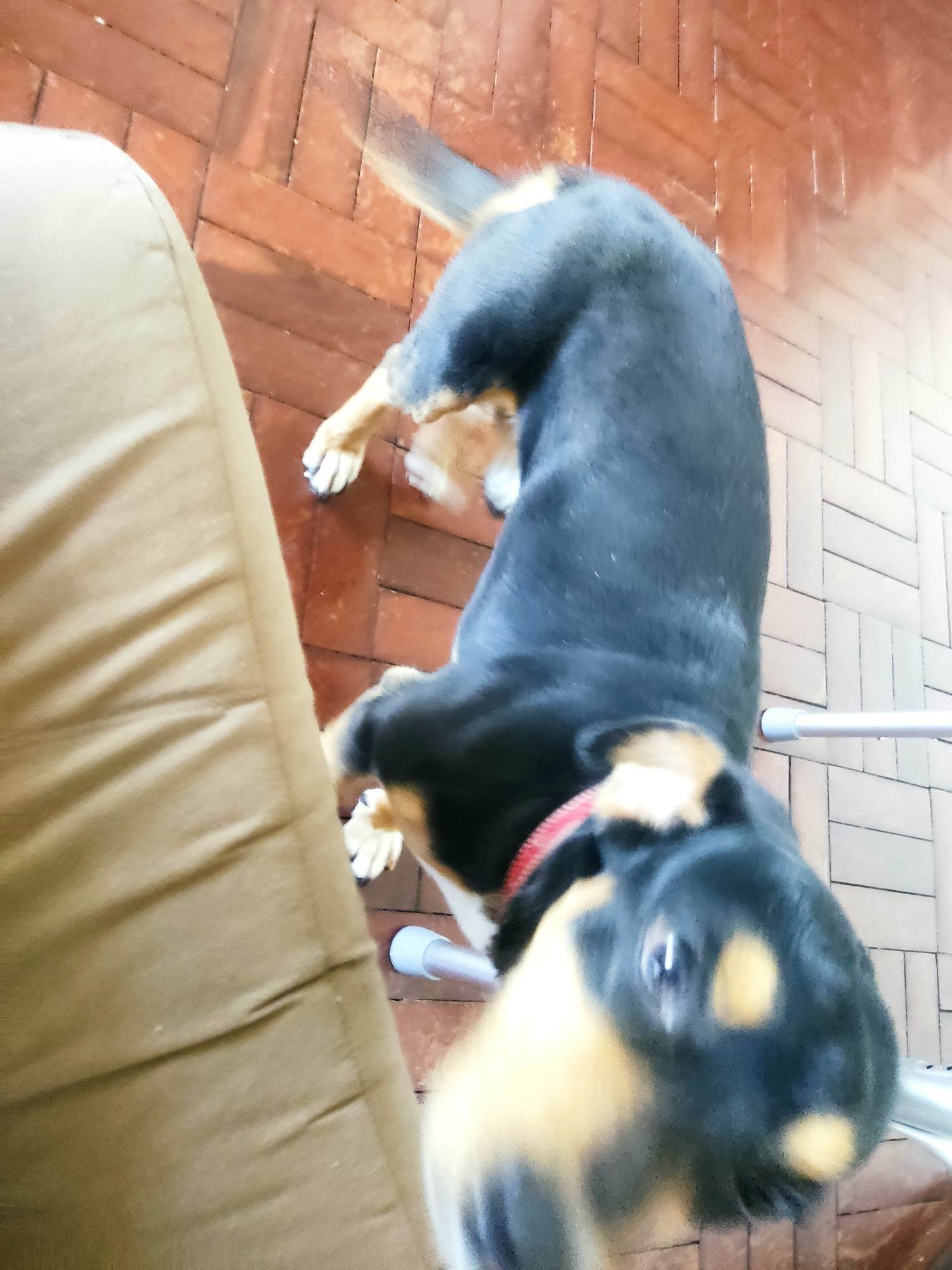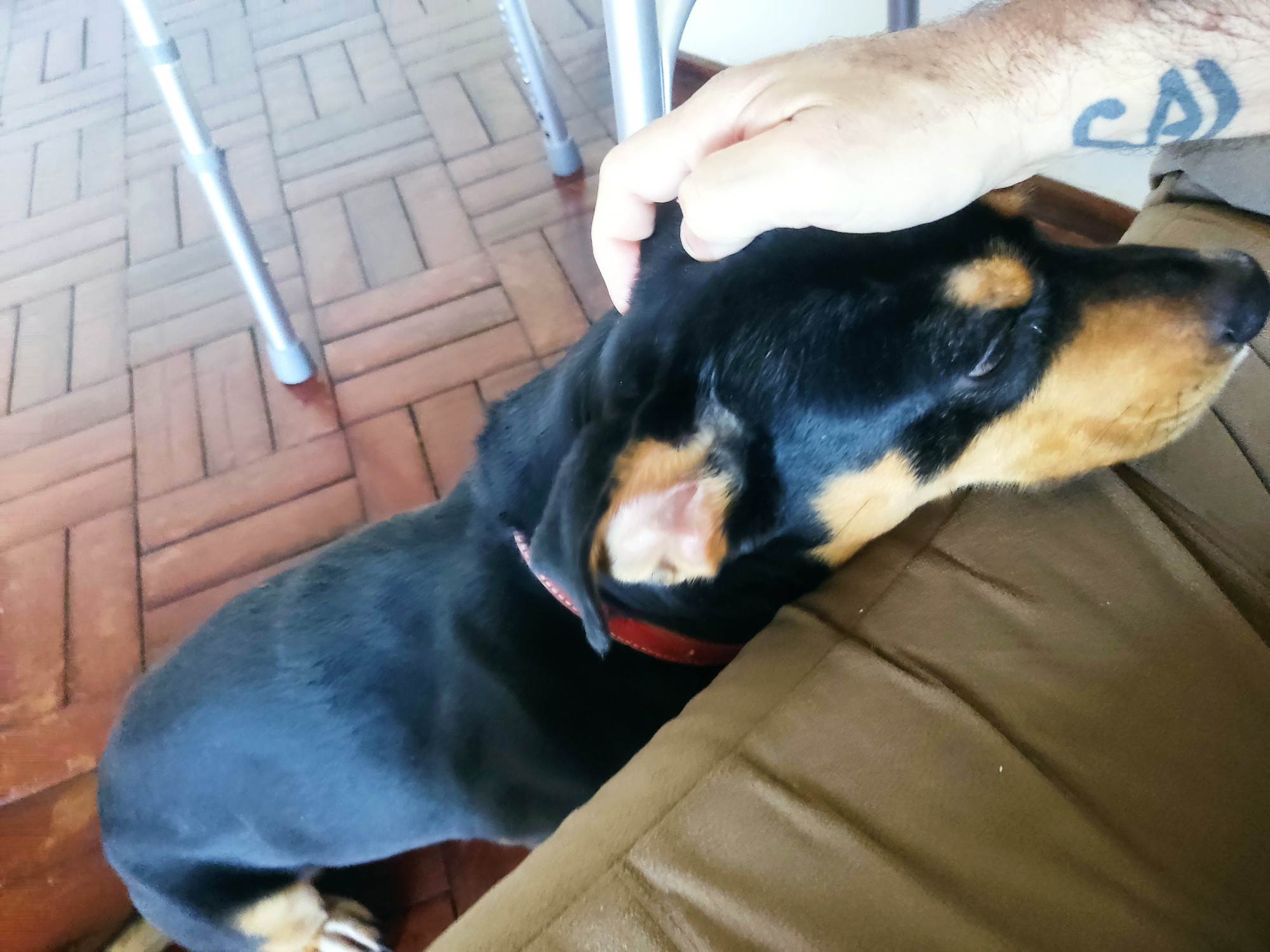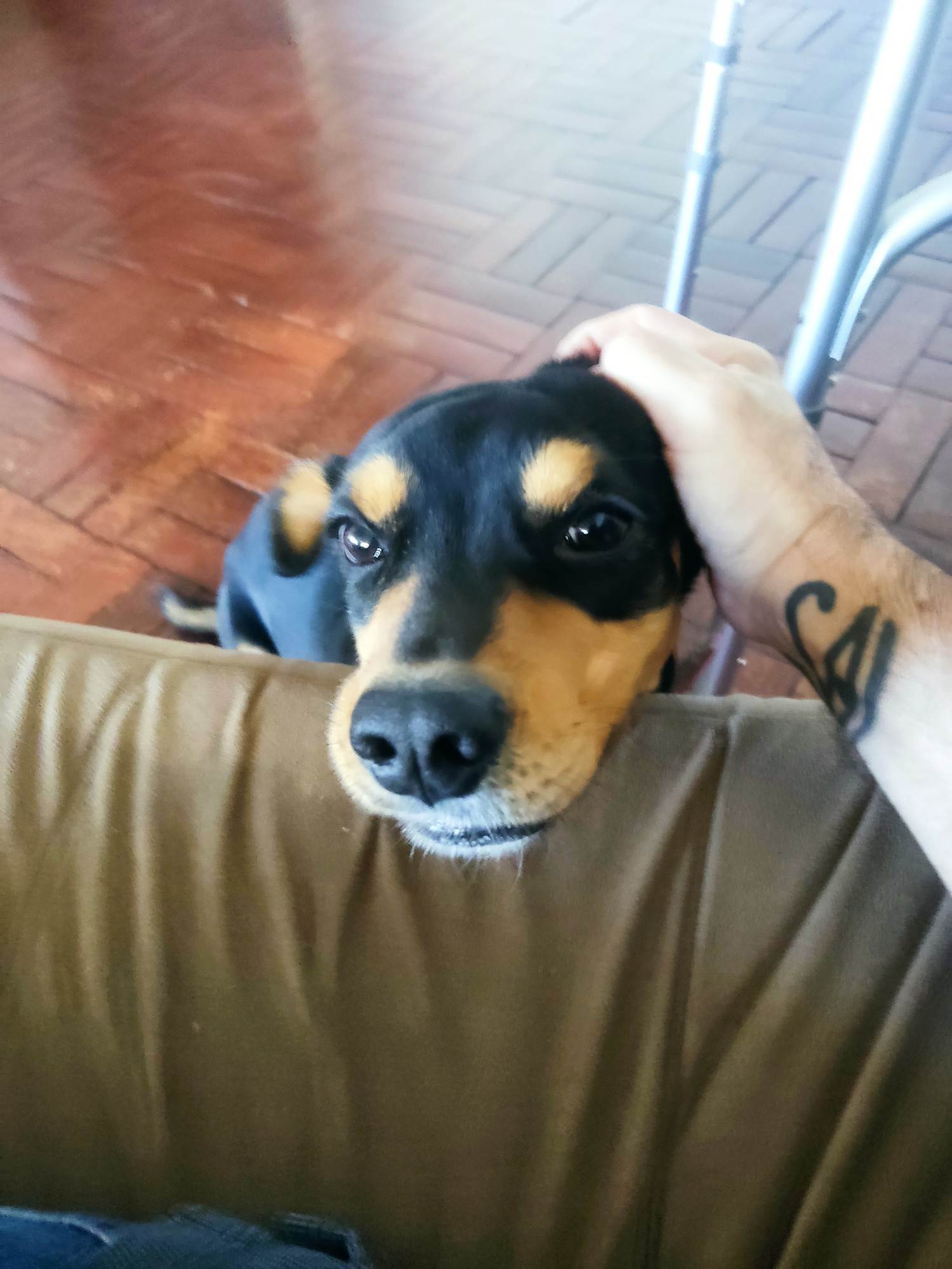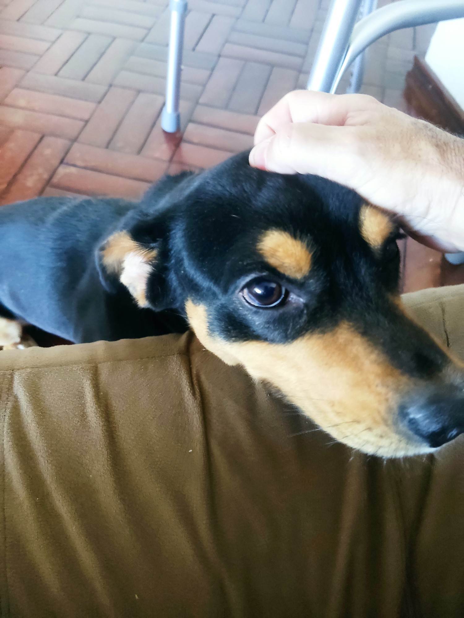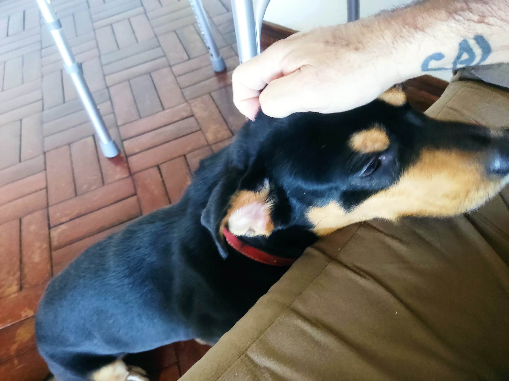 O cachorro foi encontrado no sítio, filhote e agora com a idade avançada o meu pai não consegue cuidar dele, pois motivos de saúde