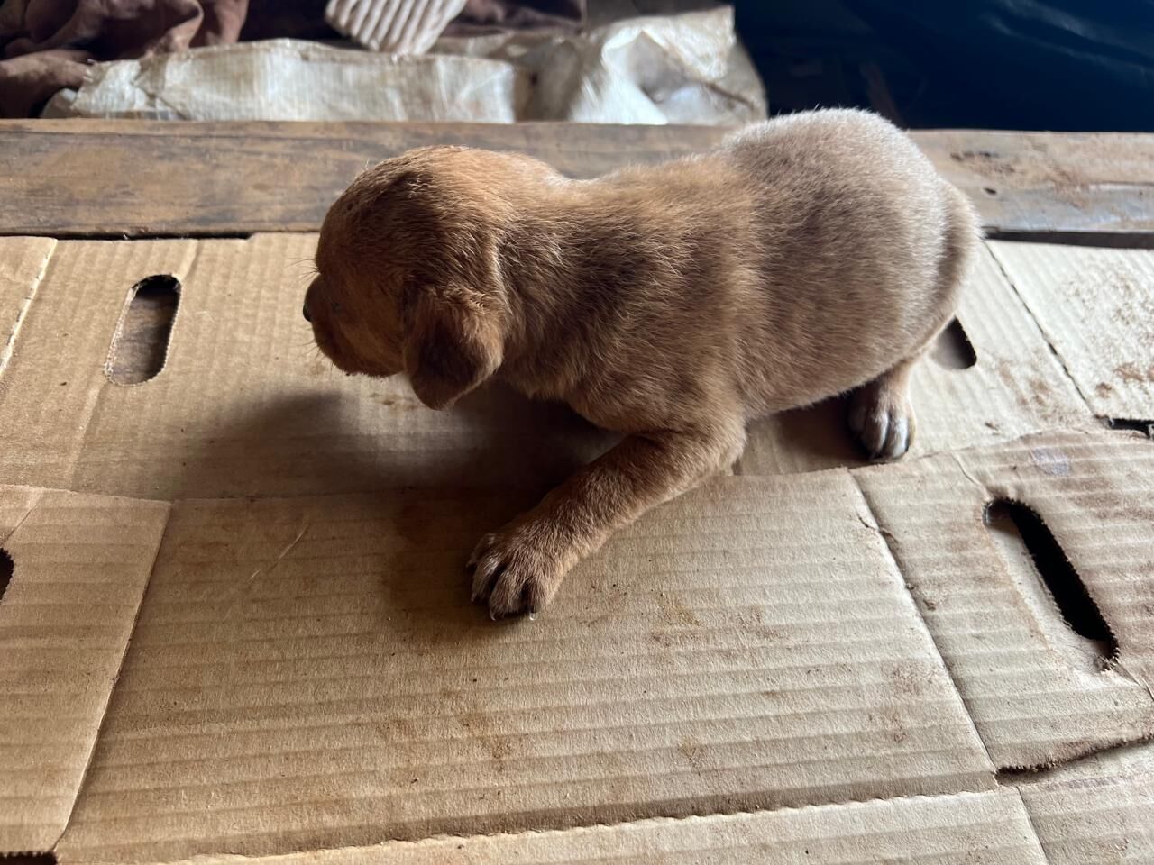 Filhote tem menos de 2 meses de idade e porte médio. Ele possui uma pelagem caramelo e um temperamento extremamente dócil, calmo e sociável. Este filhote é um dos seis irmãos que foram resgatados, pois a mãe foi abandonada na frente do sítio dos meus pais.