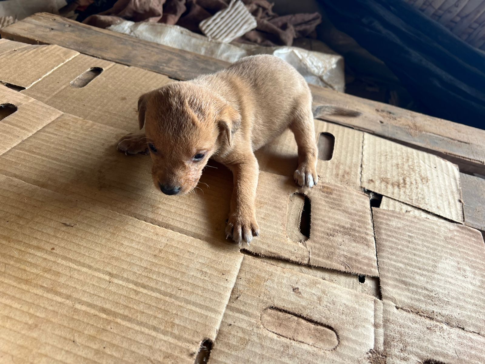 Filhote tem menos de 2 meses de idade e porte médio. Ele possui uma pelagem caramelo e um temperamento extremamente dócil, calmo e sociável. Este filhote é um dos seis irmãos que foram resgatados, pois a mãe foi abandonada na frente do sítio dos meus pais.